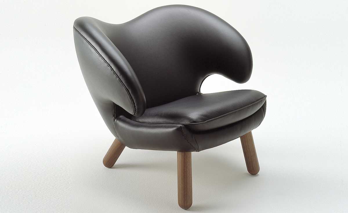 鹈鹕椅是一个了不起的设计,吸引着每一个参观者。其有机的形式是表现Finn Juhl受现代“自由的艺术”启发的一个很好例子。鹈鹕椅非常舒适,具有典型的Finn Juhl特性,它通过最好的传统手工艺缝制,脚架可选用几种不同类型的木材。