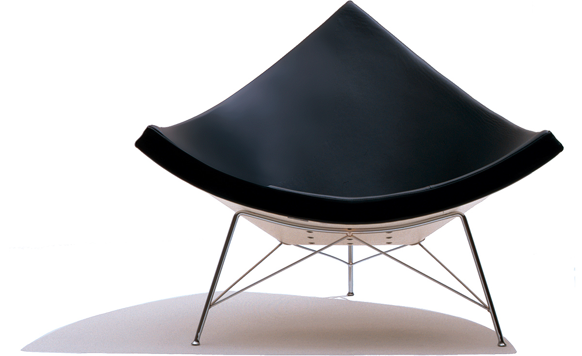 玻璃钢休闲椅——椰子椅(Coconut Chair)是由George Nelson设计工作室创作的。George Nelson将椰子分为八个部分,取其中之一作为椅子的外形。椰子椅(Coconut Chair)凭借着它可爱的造型、精简的结构和极大的视觉冲击力,改变了美式家具的外观和人们对它的印象,成为20世纪50年代的一个设计经典。