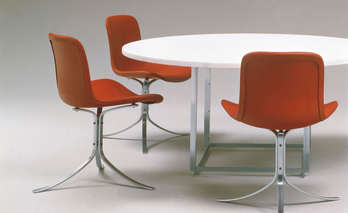 PK9——也称为“郁金香椅”是Fritz Hansen公司的“Poul Kjaerholm系列”之一。 简单而著名,PK9遵循Kjaerholm精致的设计风格。它适用于任何环境,从休息室和私人住宅等领域。PK9是一个不错的选择,它可搭配任何款式的桌子,但最好的搭配是PK54座子。Poul Kjaerholm对各种建筑材料特别感兴趣,尤其是钢铁,他认为是天然材料。在他丹麦工艺美术学院学习的时候,他去了Fritz Hansen工作,大约一年,他设计了一个值得注意的椅子的原型。1955年,Kjærholm开始与制造商Ejvind Kold Christensen合作,这一直持续到1980年去世。1982年,Fritz Hansen接管了生产和销售“Kjærholm系列”:从1951年到1967年的细致的设计。PK9郁金香椅有一个三脚架,拉丝不锈钢基础,皮革坐垫可供您选择。