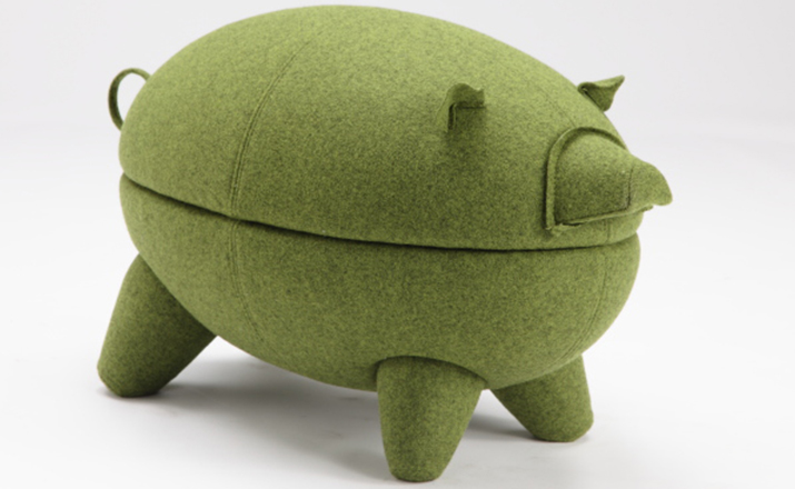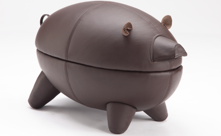 猪圆凳与现实中的动物“小猪”十分形似,设计灵感亦来源于此。基于猪圆凳简约的设计线条,其外表可做成油漆、皮革或布,颜色搭配更为丰富多彩,方便搭配各种场景和范围。猪圆凳同时还是一张多功能的圆凳,取去猪的上半部分,可作为茶几使用,其材质为玻璃钢,下隔层可以放置小物件和杂志等。