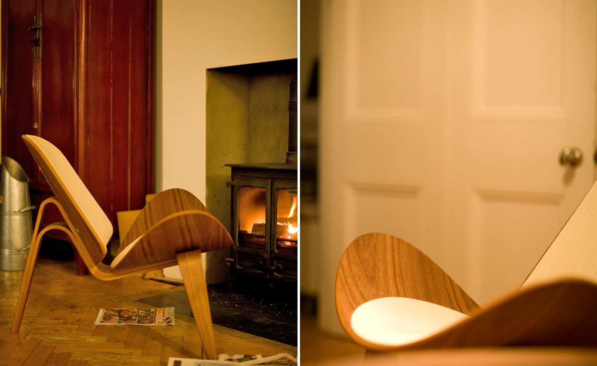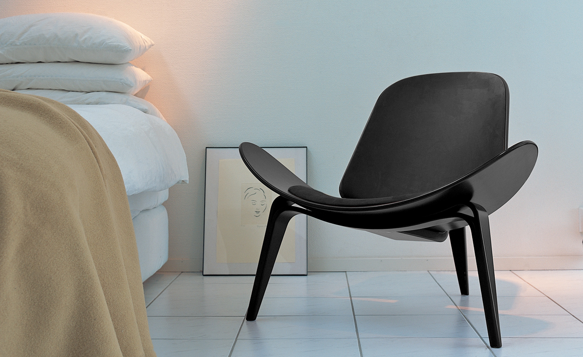 Wegner shell chair(三脚休闲椅)是由Hans J. Wegner设计的,椅子一共有三个脚,座椅像一个笑脸,又像胡子,设计师给他的编号为:CH07,外形现代、美观、独特,既可以有来看书读报,也可以用来休闲娱乐,成了20世纪最佳的设计之一。