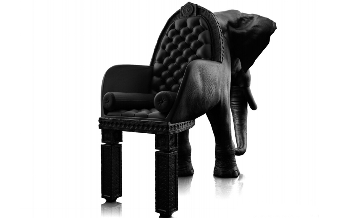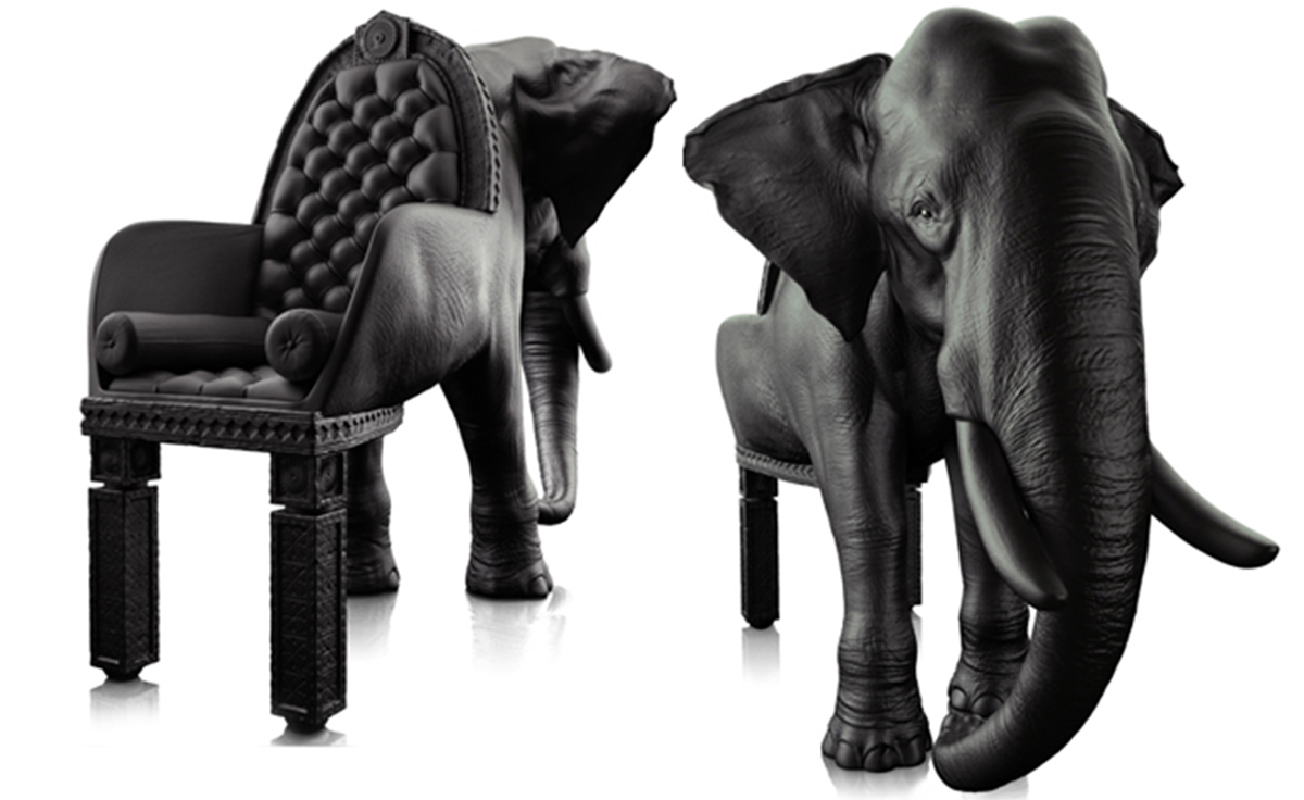 西班牙设计师 Maximo Riera 设计了一组包括章鱼、犀牛、海象、狮子等在内的 15 件动物造型座椅系列皮椅。这个系列的动物椅集合了不同的物种,从哺乳动物到爬行动物,甚至包括昆虫。每个设计都保留了动物的自然活力,同时又准确还原动物的外观特征。这些动物椅的初衷是一种尝试,希望以动物的栖息来反映和捕捉大自然的美,并向我们星球上的整个动物王国致敬。设计师除了表现动物的野性美,也在善意的提醒人们要维持生态的平衡,尤其对濒危物种多加关注,以实现人与自然的相互依赖和谐共存。Elephant Chair(大象椅)是他之前一个系列家具作品的延续。这一系列作品将家具和动物结合到一起,每件家具的主要部件都装饰有一种动物。大象椅(Elephant Chair),拥有钢制的骨架、泡沫塑料的血肉和黑色的皮肤(皮革),全重高达160公斤,不论是块头还是重量,还是那颗象头雕刻的精细程度,都能让人叹为观止。