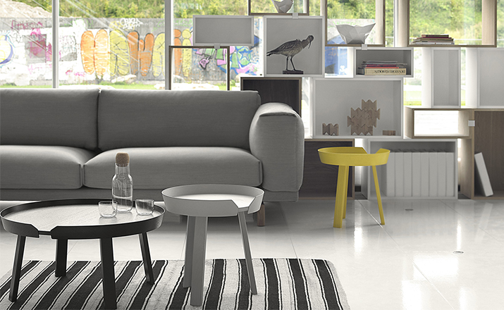 Around 边几/咖啡桌系列是丹麦设计师 Thomas Bentzen 2011 年发表的作品,结合简约外型与多样功能性,加高的桌缘设计减低桌面物品掉落的机会,是款相当平易近人的设计且容易搭配。设计师 Thomas Bentzen 在设计这款咖啡桌时说,希望可以寻求一种友好、优美的风格,这款小巧简单的咖啡桌很具有现代感,而且将不同尺寸多个组合在一起是个不错的选择。