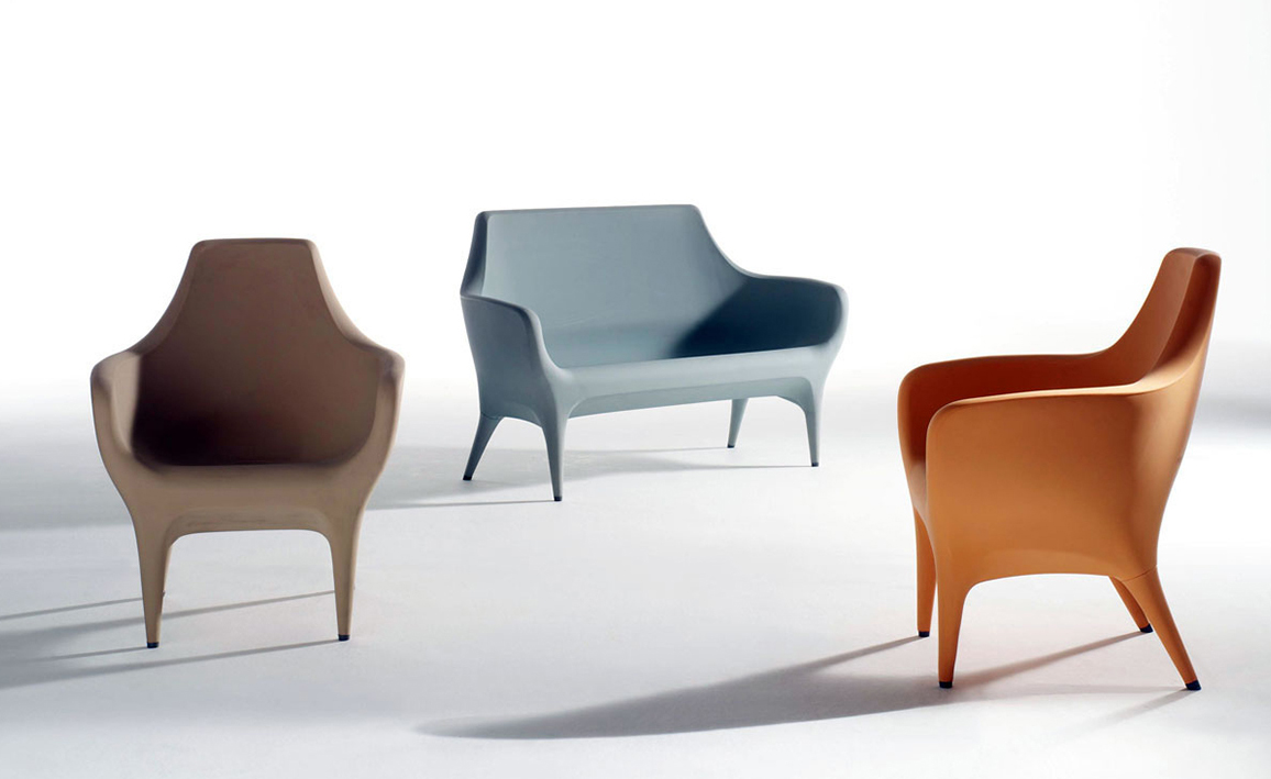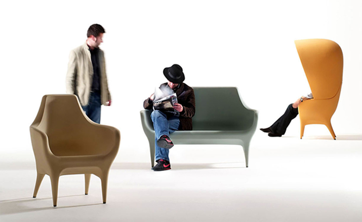 Showtime Poltronas 沙發系列是 Jaime Hayon 受邀與西班牙頂尖設計家具公司 BD Barcelona 合作推出的精品級藝術家具系列,靈感來自於米高梅歌舞劇場景,從單人沙發、雙人沙發 發展到最具趣味性的圓頂高背沙發椅,讓人坐進去就像是身處於古代歐洲戲院的包廂中,而外面的人只能看到一雙伸出的腿,充滿戲劇性的設計,不僅多了一份神秘感,,更令人不禁莞爾。