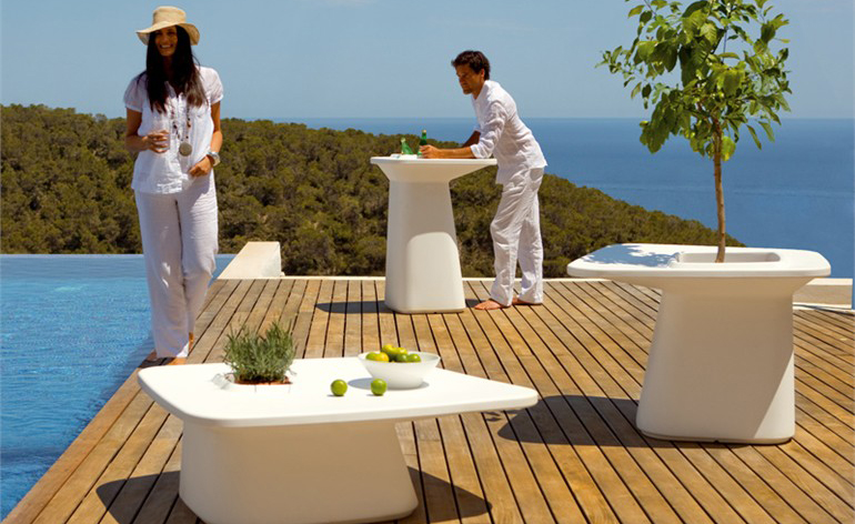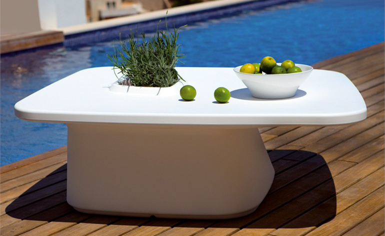 MOMA系列, 是西班牙著名设计大师Javier Mariscal 为VONDOM 设计的一系列户外产品。在决定创造一个新的家具概念-将花盆和户外桌子功能二合一的家具,MOMA就此诞生了,一个以多功能和独创性为特点的系列。然后在疑问:“我们怎么坐?”后,产生了可以适合不同气氛环境的三个版本,一个是休闲的,LOW,配套了同一系列的很舒适的矮座,另外一个是可以坐在一个椅子或者凳子来配置使用的,Medium ,左后的版本就是可以站起来或者坐在一个高凳来配置使用,HIGT。在设计的时候,灵感来自于自由空气下欣赏一杯清爽的饮料。最初的形状是器官的。在随着项目的发展,朝着更建筑学的形状,现在的形状就像一个柱顶或者隅撑,在表面支撑的部位,有一个洞,他的作用是花盆,一个带有VONDOM的自动淋水系统的花盆。其丰富鲜艳的色彩,令这个系列更新鲜,更个性。
