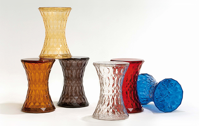 Stone Stool(钻石凳) 是荷兰设计师Marcel Wanders为Kartell公司设计的经典作品。钻石凳沙漏状对称的线形设计,完美的折光和屈光效果;几何小刻面的运用让表面不凡,光线折射后,形成如钻石般璀璨的光芒。舒展拉伸设计的刻面,使产品具有雕塑感。俯瞰产品如万花筒般绚丽多彩,为您呈现出迷幻的别样世界。因其如珠宝般的品质,Stone提供各种珍贵石头的颜色选择。
