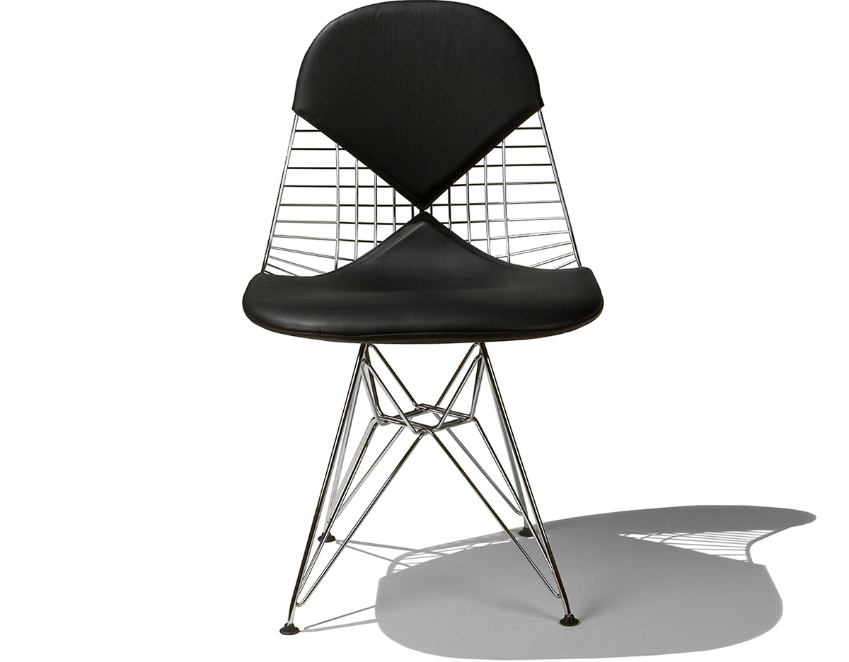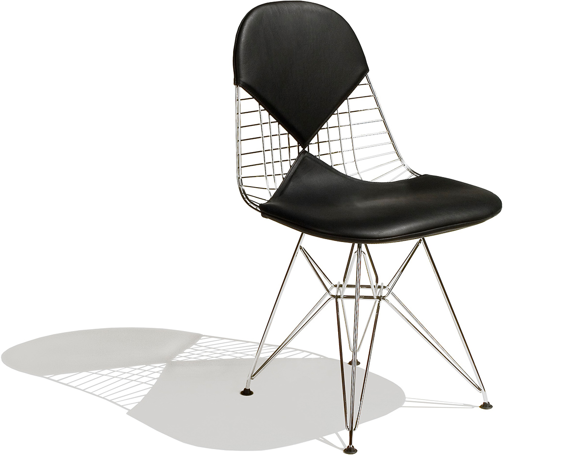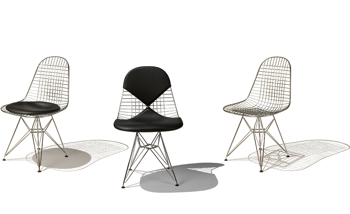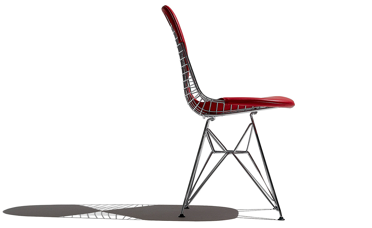 Charles & Ray Eames 1951 年發表的 Wire Chair 系列,以一片式有機網狀椅座,延伸變化出一系列不同椅腳及座墊搭配的單椅,這系列椅款輕巧透明的設計,在 60 年代可說是運用了當時最先進的技術來製作,靈感則是來自於鏤空的金屬收納籃,金屬條交織的椅座,彎曲的弧面不僅符合人體工學,在視覺上更具有穿透性。