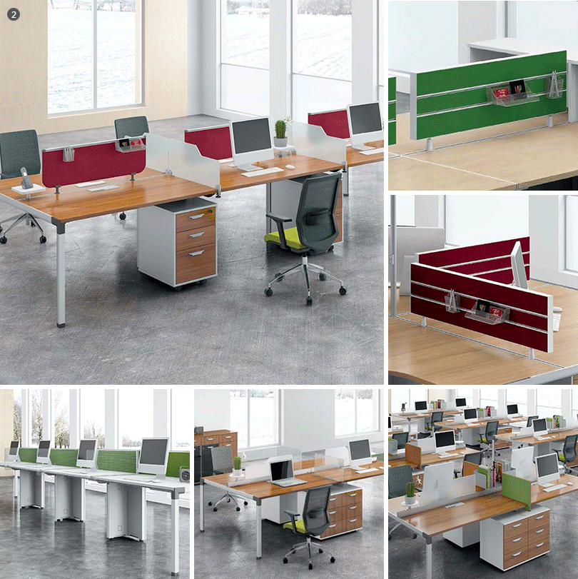 | 2、桌面屏风,多种选择:板材、玻璃、亚克力、吸音板、多功能挂槽; |