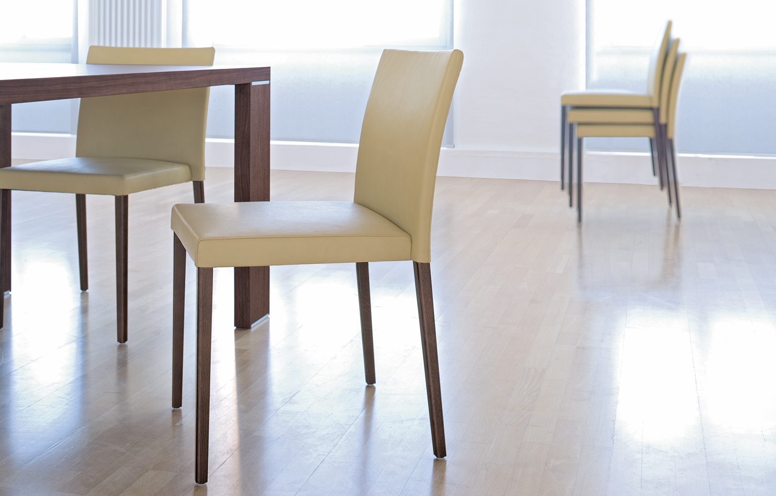 可以从20多个不同的模型中选择。他们的宽度、扶手和背部都有所不同。椅子可以通过堆叠来进行空间最小化利用,脚架也有金属和木质两种选择。