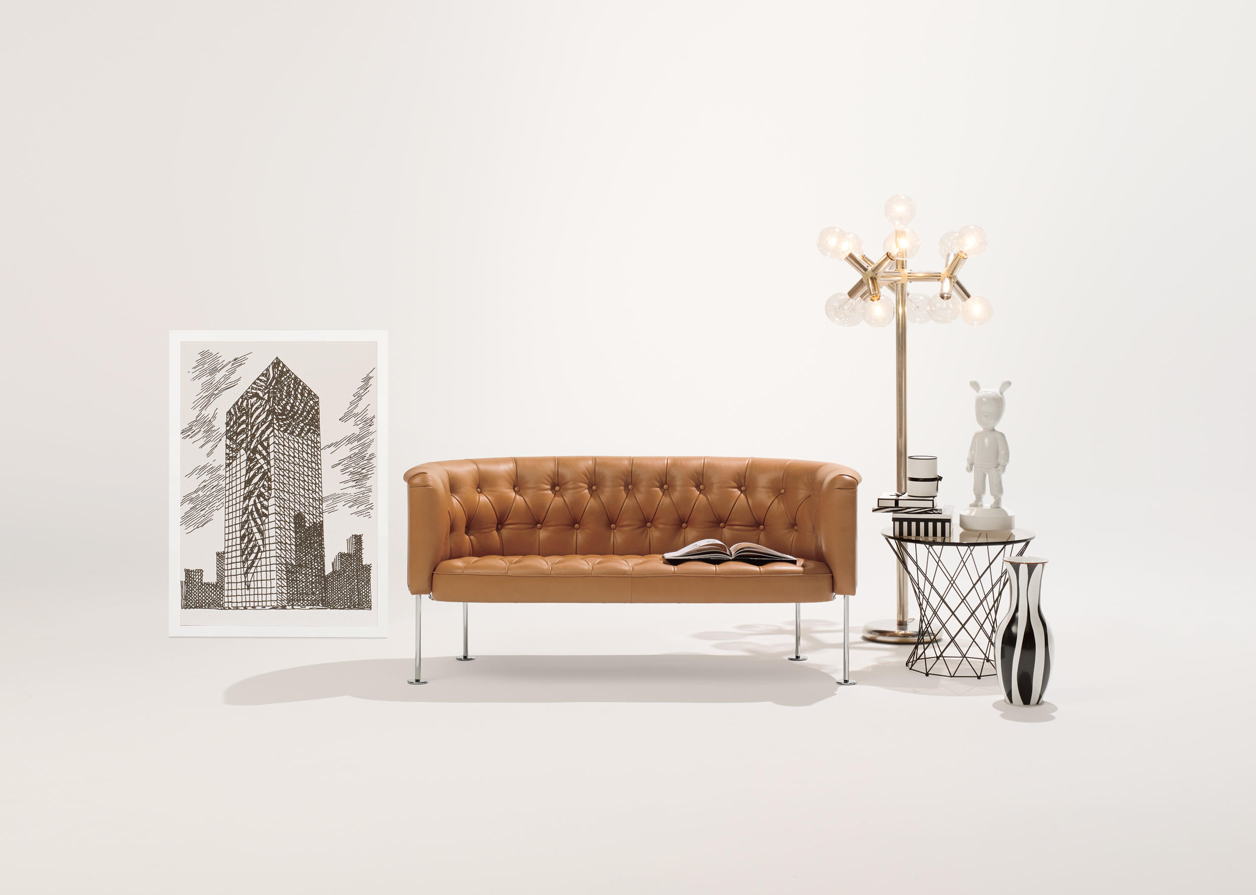 作为瑞士设计行收藏的一部分,Walter Knoll重新发行这款于1962年设计的经典的历史家具。与所有的切斯特菲尔德家具一样,独特的菱形图案结构的靠背和座位。传统的纽扣装饰服饰技术确保了这一点。一种巧妙地装饰体验标志。这是对包豪斯运动的致敬,反映在它精致的腿上。
