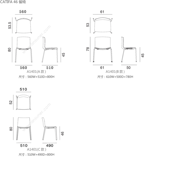 Catifa 46 餐椅 系列尺寸/示意图