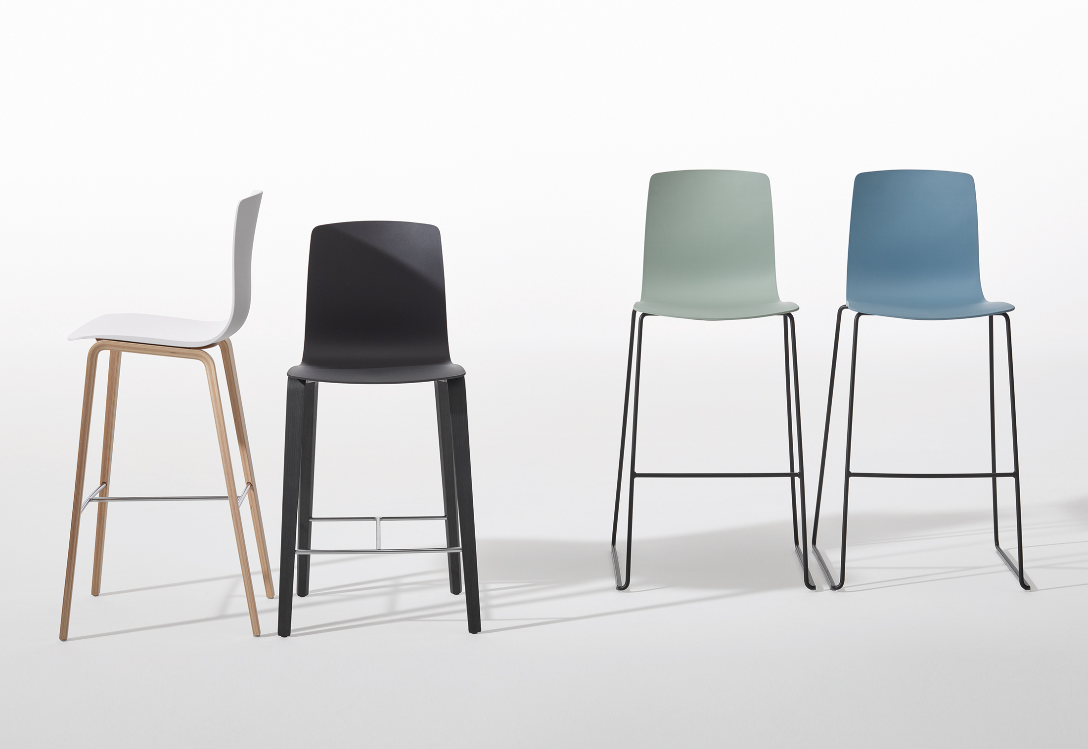 Aava系列继续发展,2016年新的凳子选项.Aava的现代款式有两种高度,现在采用木质底座,表现出物质的温暖。新的底座兼容聚丙烯和木壳,有天然桦木效果,天然橡木色,天然胡桃色和山毛榉木,与木壳的颜色相匹配。 Aava可进一步指定聚丙烯扶手,座垫或正面内饰,用于塑料外壳和衬垫,便于堆叠。视觉上引人注目,这些纹理相结合,创造出对任何环境敏感的自适应形式。