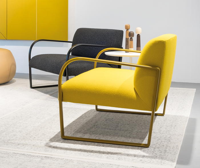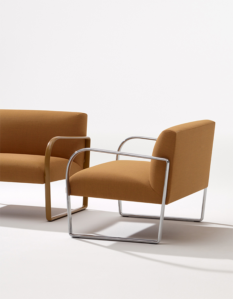 Arcos系列在形式和背景上都反映了其经典的灵感来源。该系列以公共空间为设计理念,配有椅子,休闲椅和沙发,全部配有扶手,可容纳休息室,餐厅和候诊室。 Arcos旨在与Steeve,Parentesit和Cross对话,为休息,放松和社交创造舒适的环境。特别注重颜色定制,可以在室内装潢和哑光金属中创造出天鹅绒般的墨色调单色,表达低调的表达。