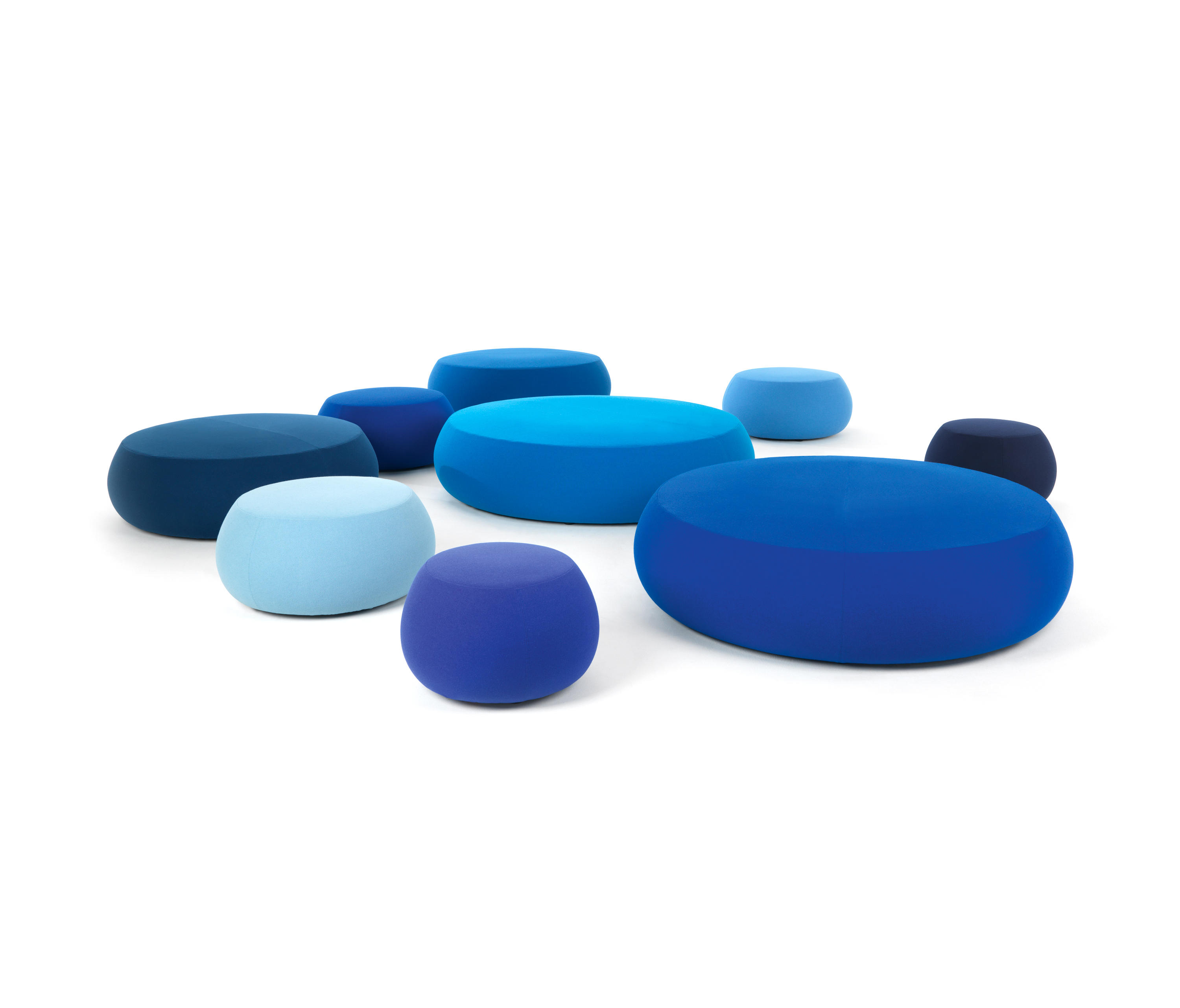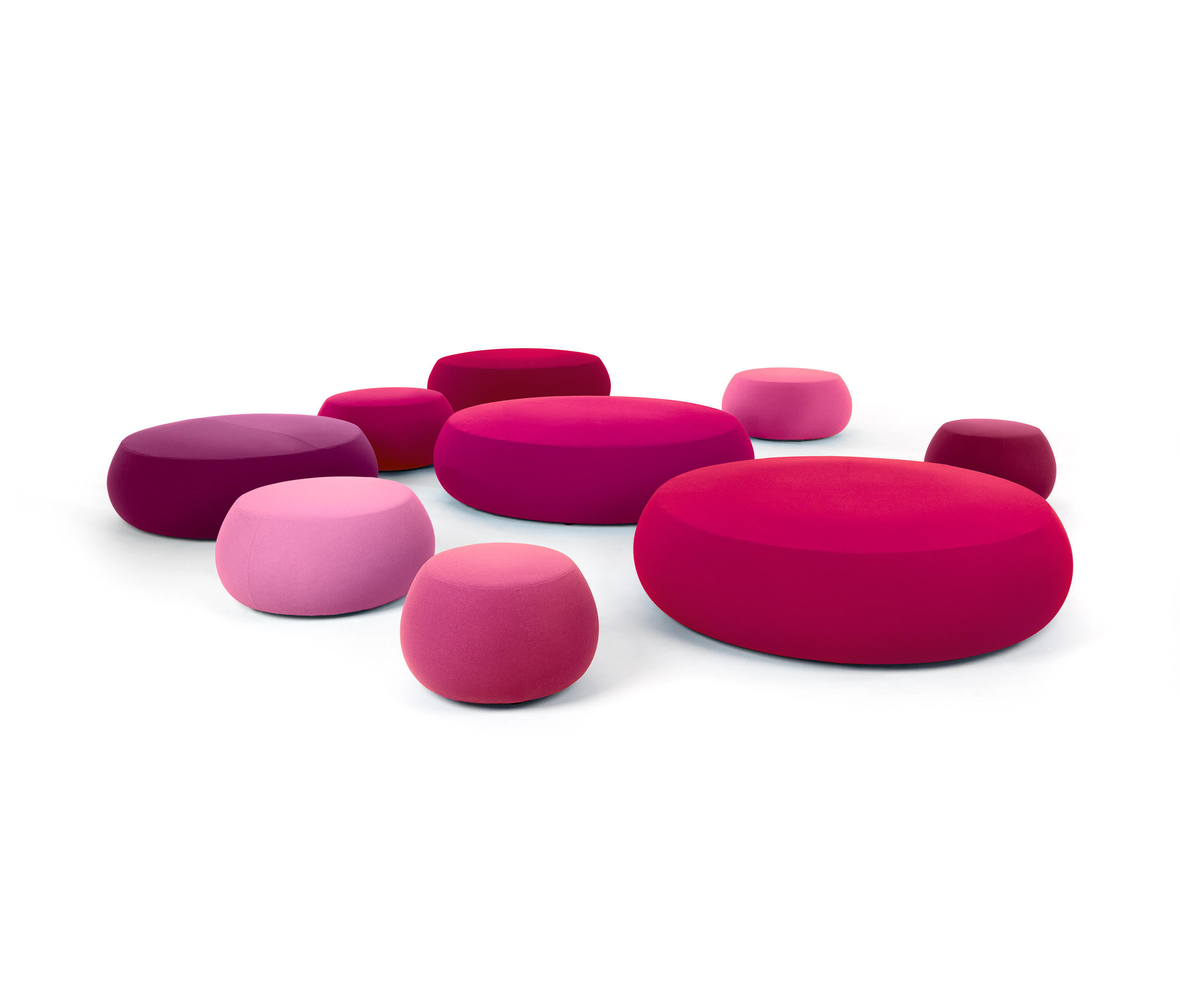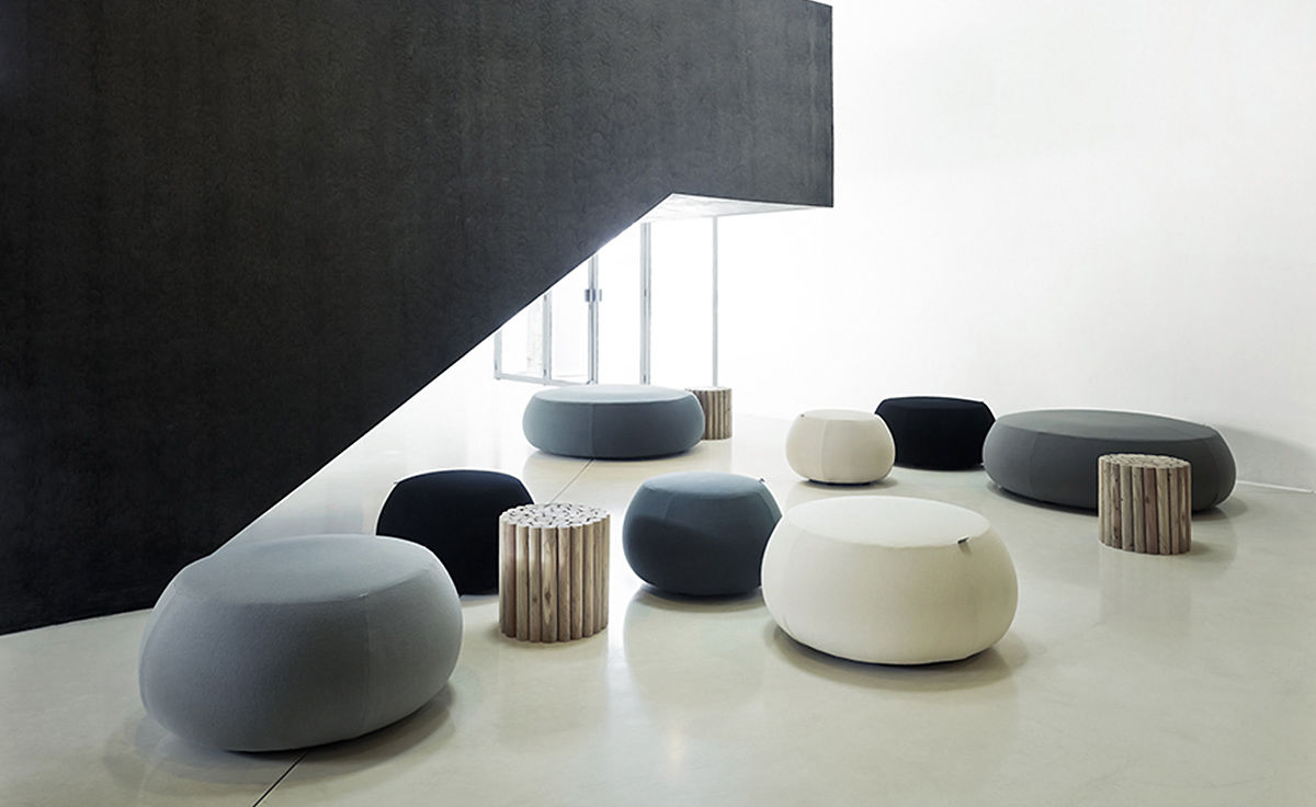 Pix Pouf系列家庭垫脚软凳由日本设计师Ichiro Iwasaki、设计的。形象的轮廓、柔和的色彩运用,饱满的外观,防霉实木内框架或玻璃钢内胆、高密度海绵、进口布艺或皮革(颜色可选)。可适合于不同大小的空间,如会议室、 会议活动的多功能厅,亦或是教室和放松的休闲区,还有家庭使用。这系列有四种尺寸大小 (67,87,137 和 177 厘米直径) 。无论室内外都非常合适,让劳累一天的双脚得到无限的放松。