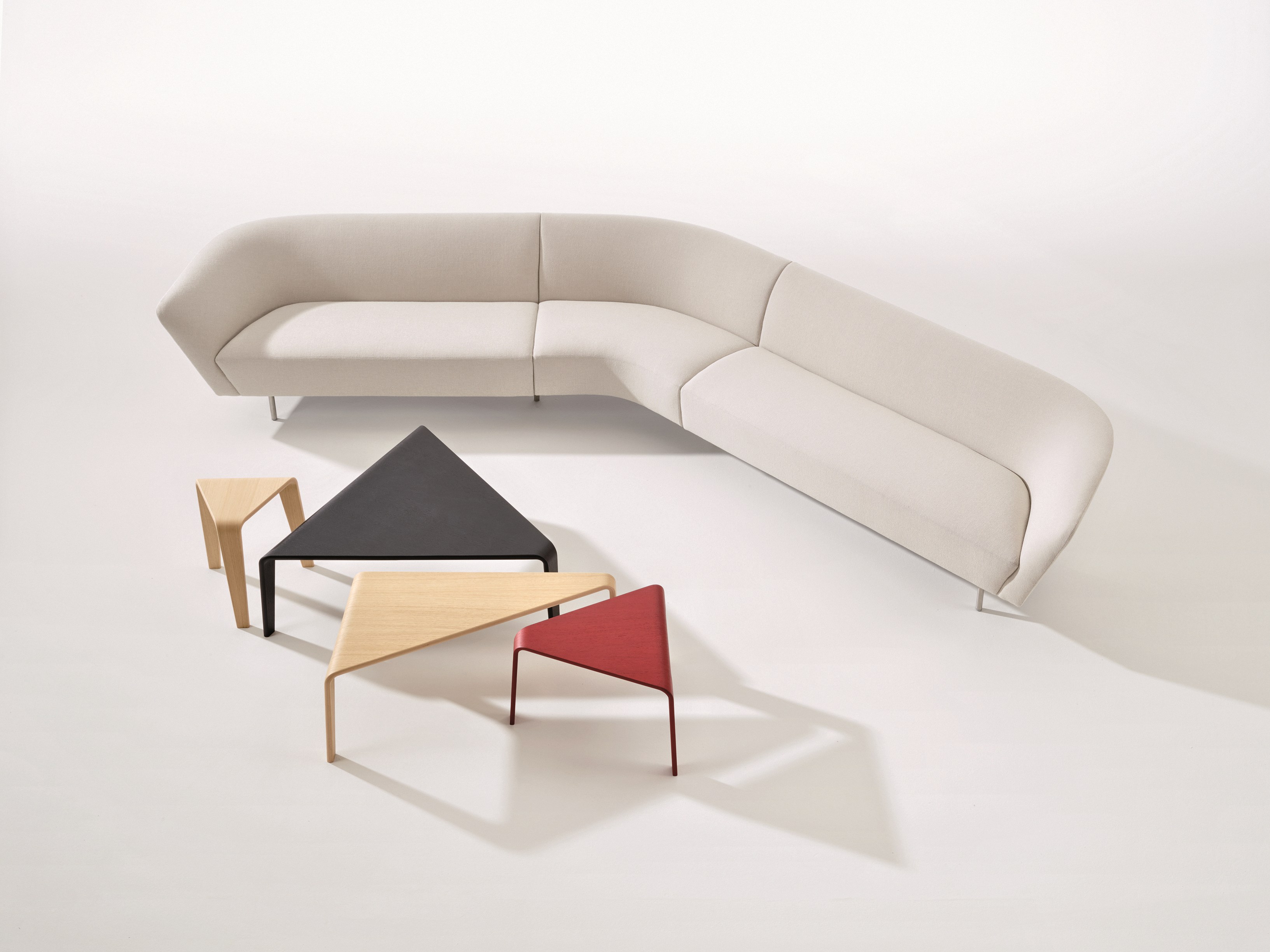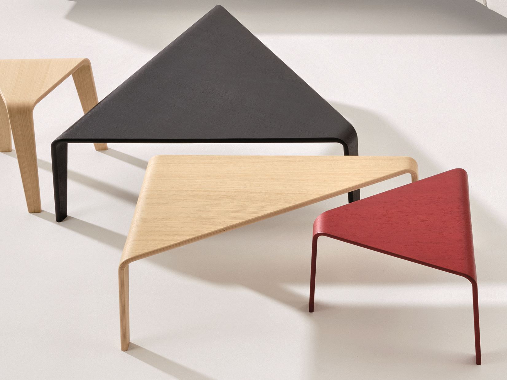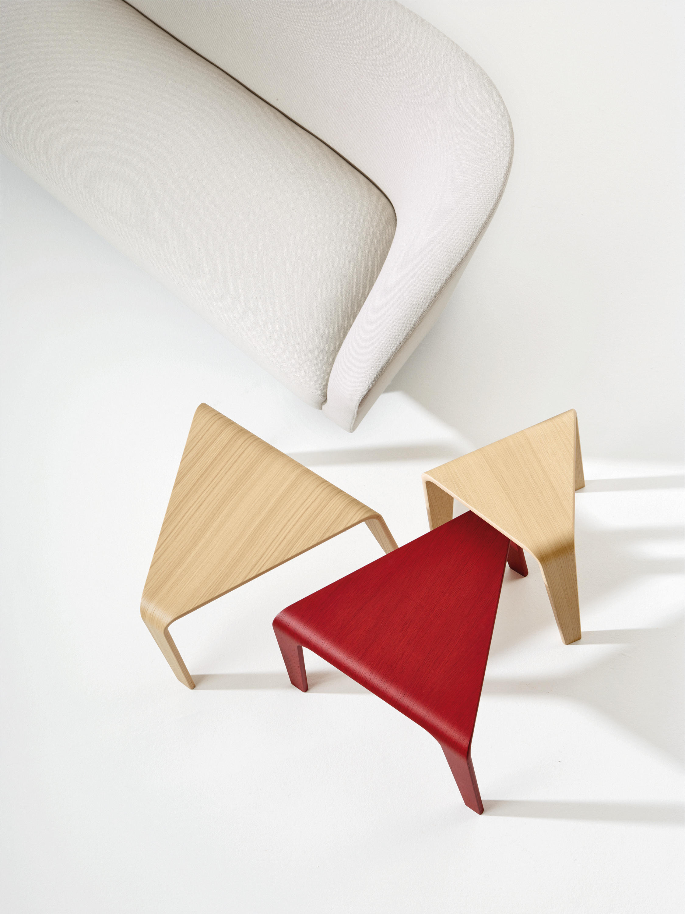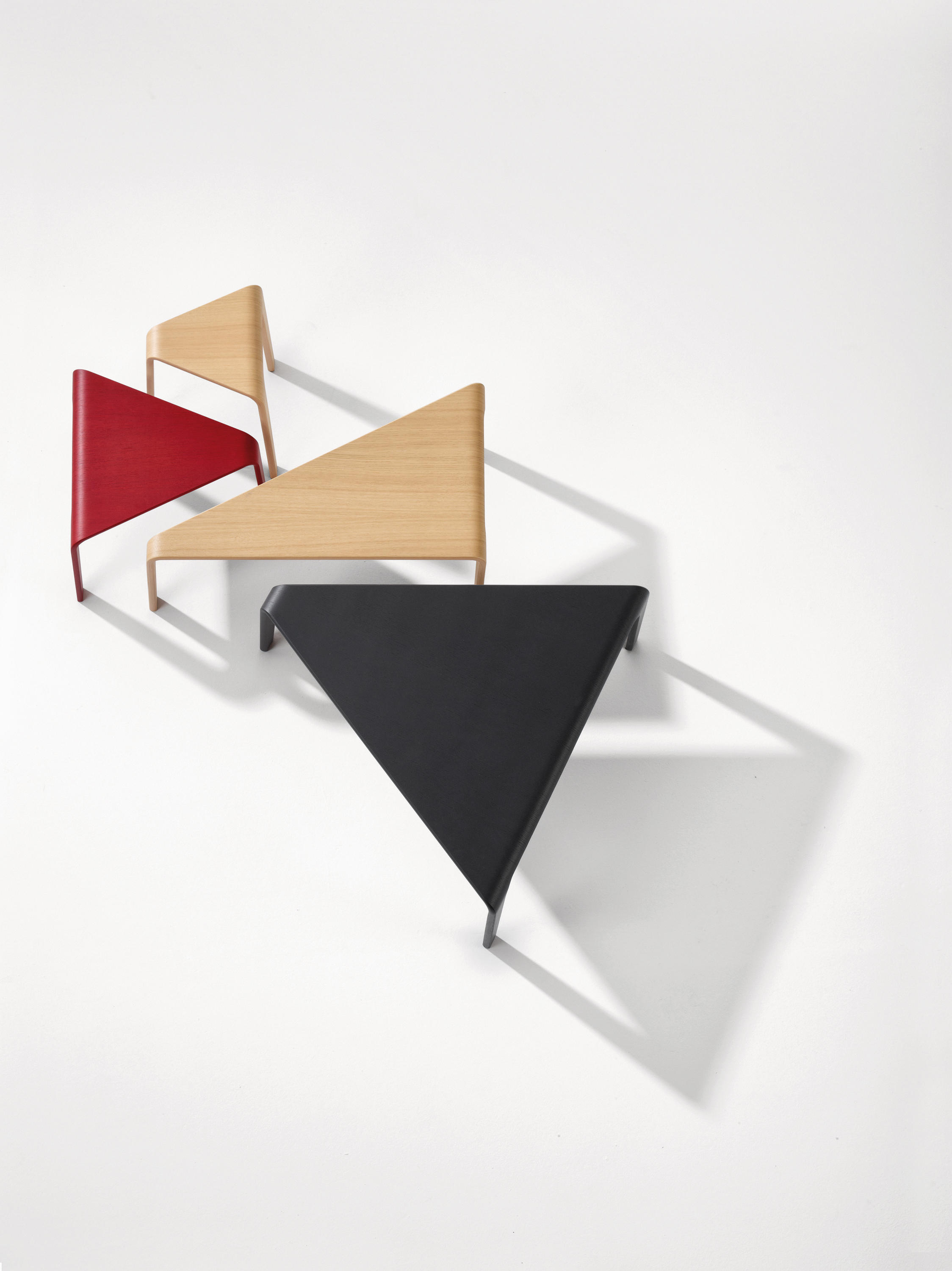Ply采用三角形和模块化设计,是一种低矮的桌子和凳子系统,采用流畅的木线条。 其设计旨在创造从顶部到腿部的连续线条,其减少的轮廓和温暖的材料与其动态形状相得益彰。 单独或成组,Ply的俏皮几何表面就像七巧板的游戏,形状和颜色共同创造开放的构图。