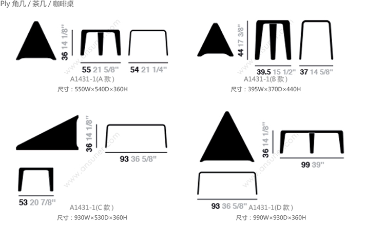 Ply 角几/茶几/咖啡桌 系列尺寸/示意图