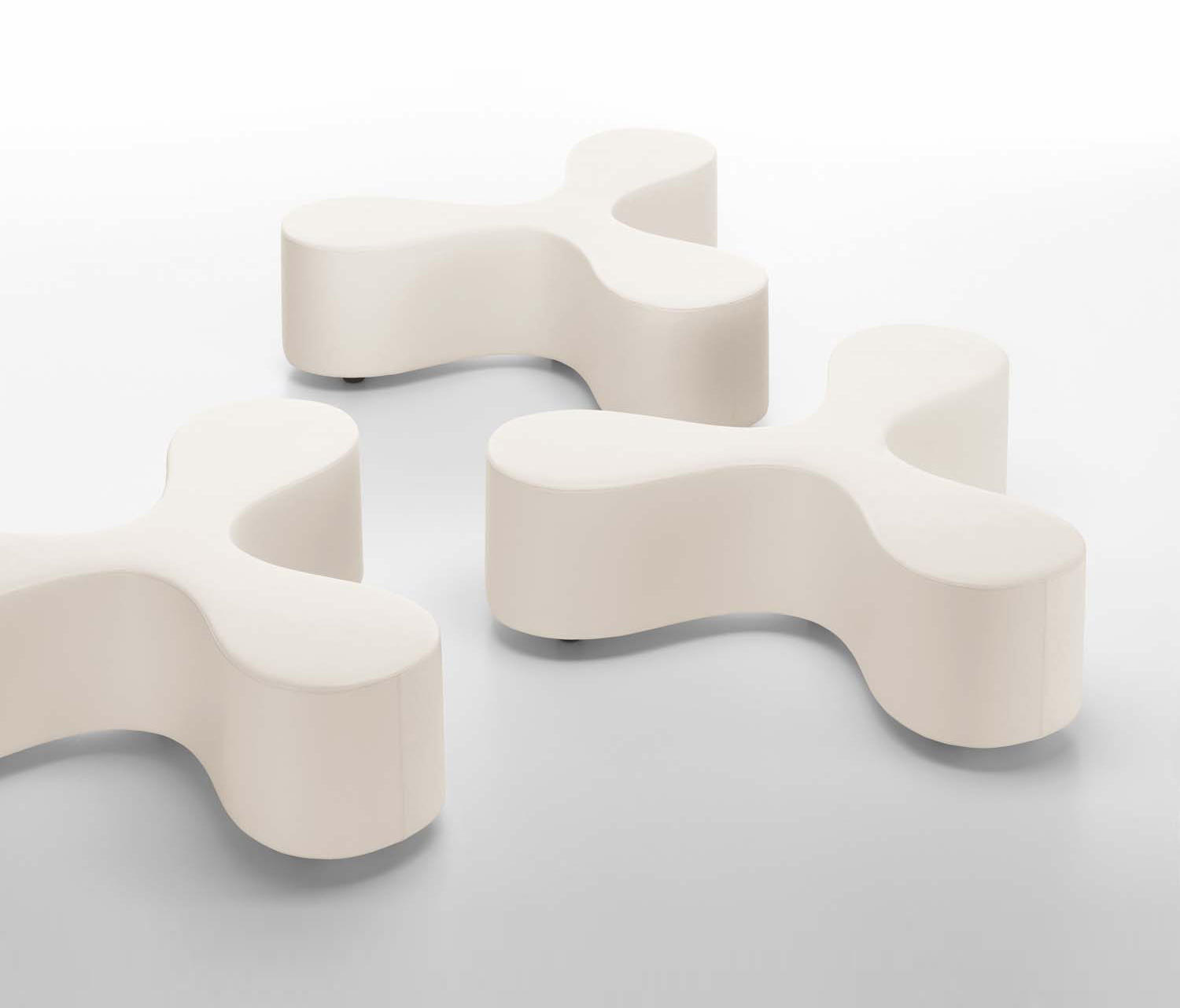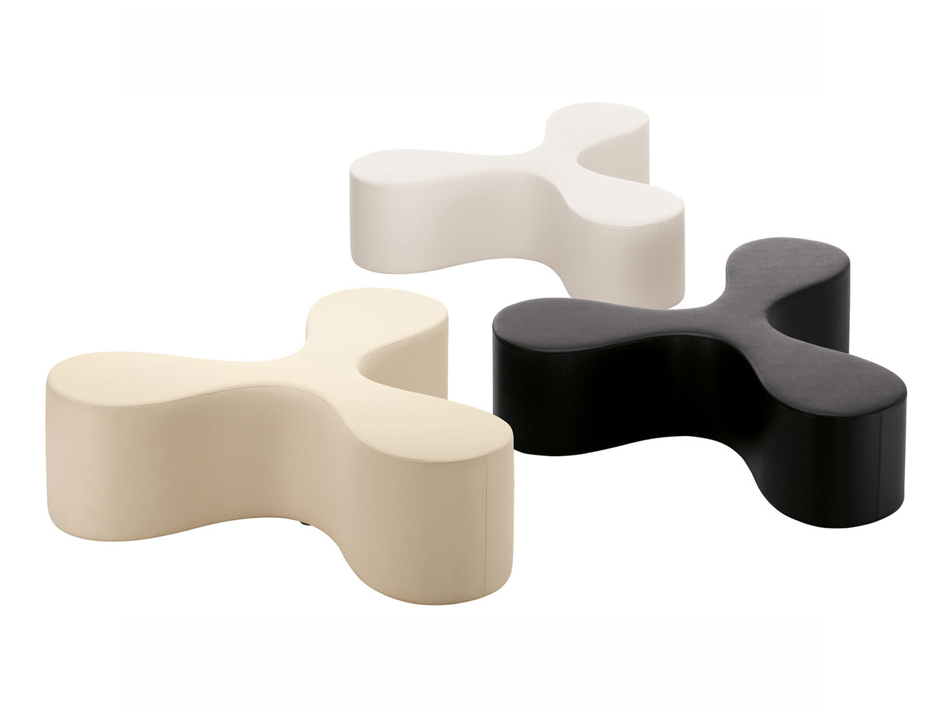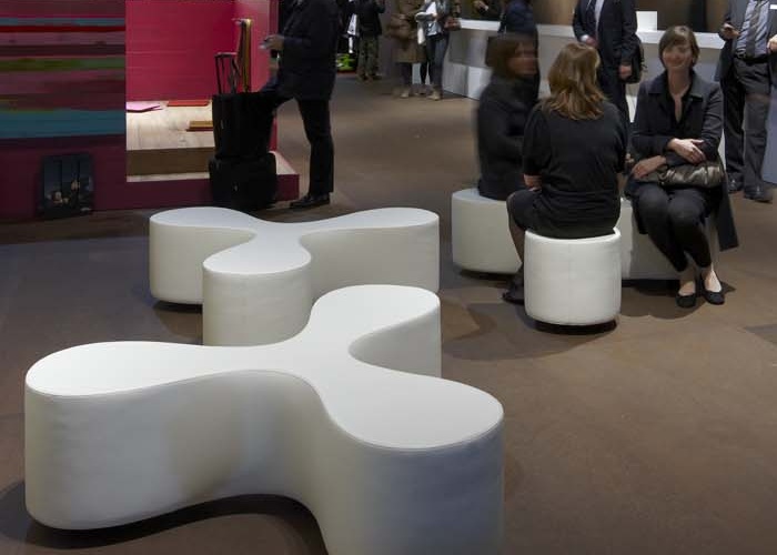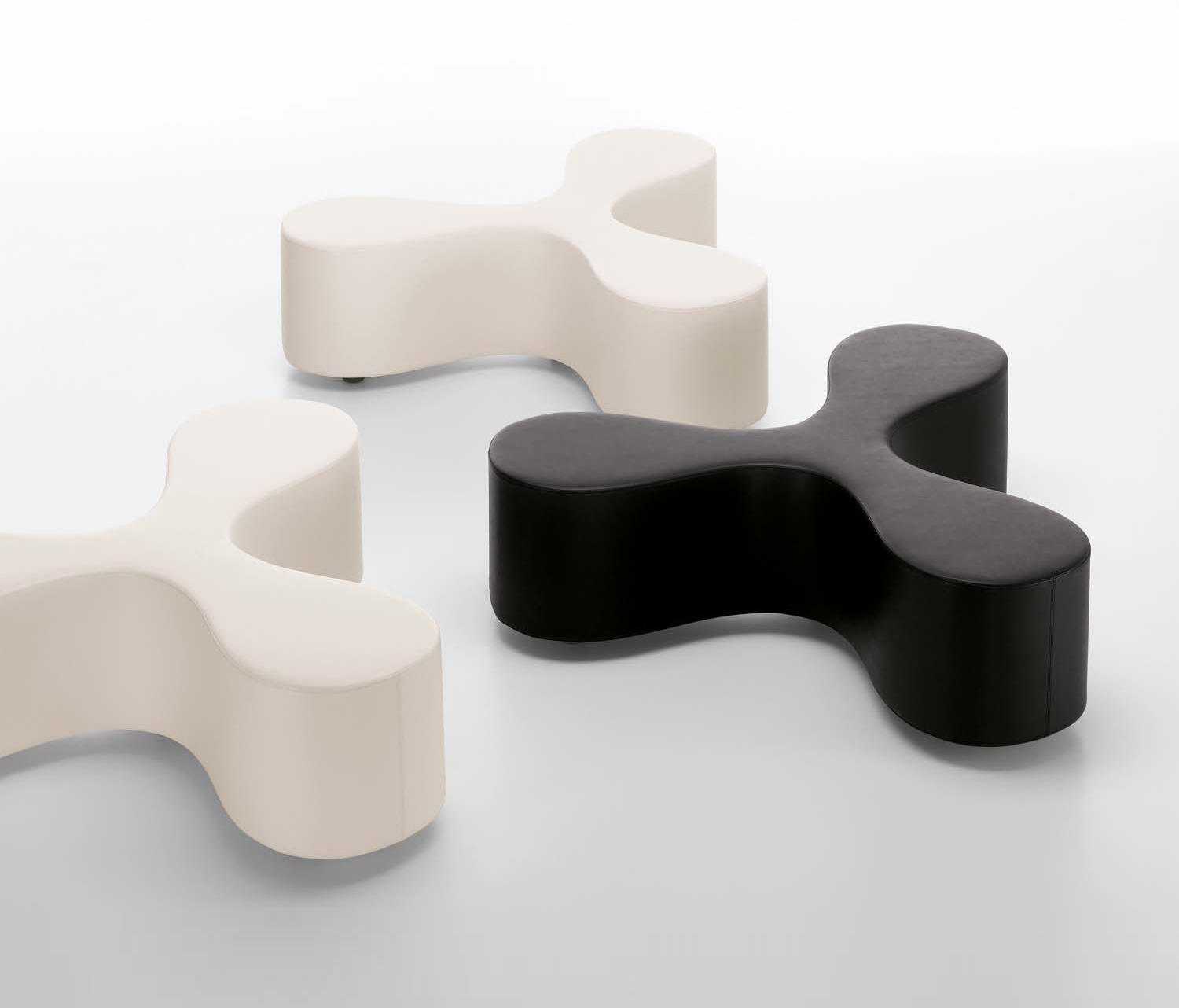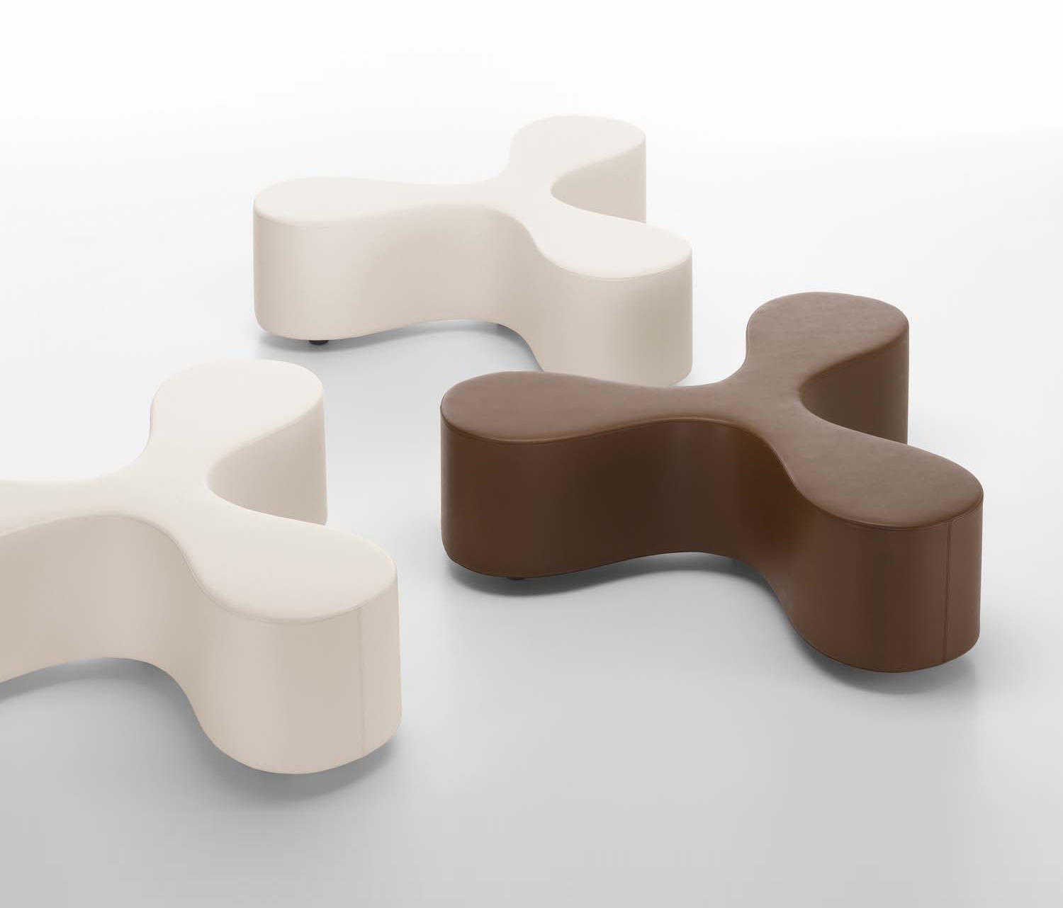 花是一个长凳,有一个细长的中心和花瓣形状的座位设计,让人联想到三叶草或风格化的花朵。它舒适地容纳了至少三个人,他们要么从事交流,要么面对彼此,在孤独中放松。