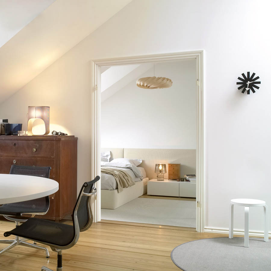 信仰进步和日益增长的经济繁荣是1950年左右美国生活方式的核心方面。一切似乎都有可能,人们努力做到“现代”。 为了将现代设计融入美国家庭,乔治·尼尔森构思了各种日常用品:灯具,钟表和其他家居饰品。 直到20世纪70年代,尼尔森办公室为家庭创造了许多不同的物品,包括泡泡灯和球钟,它们成为了本世纪中期现代设计的象征。
