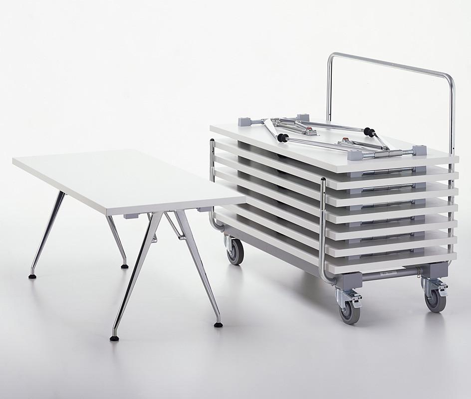 凭借他的Click设计,Alberto Meda创造了一个功能强大的折叠桌。 由于平面折叠机制和优雅的腿部线条,Click看起来不像普通的折叠桌 - 为了增加便利性,只需按一下按钮就可以折叠它的腿。 它有三种尺寸以及一套实用的十张桌子,带有一个可容纳所有十张桌子的堆垛车。