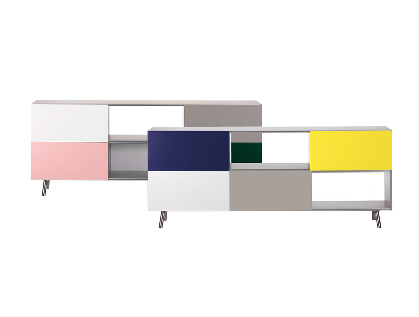 模块化结构,Kast存储单元以侧板作为基本版本开始。 对于中等高度版本,第二个基本模块放置在顶部以创建架子/壁柜组合。 在最高的版本中,添加了两个简单而坚固的木质元素。 Maarten Van Severen特别关注滑动门的颜色,这不仅强调了Kast的比例,而且给人一种清新和乐观的感觉。