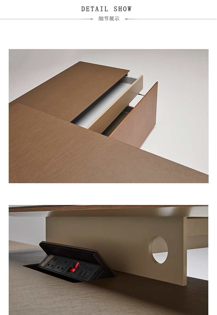 细节的架构。执行办公系统由不同模块支持的不同类型的飞机组成。Neutra桌面系统让人想起Richard Neutra建筑,水板被翻译成玻璃和木材,结合技术皮革和加工金属。