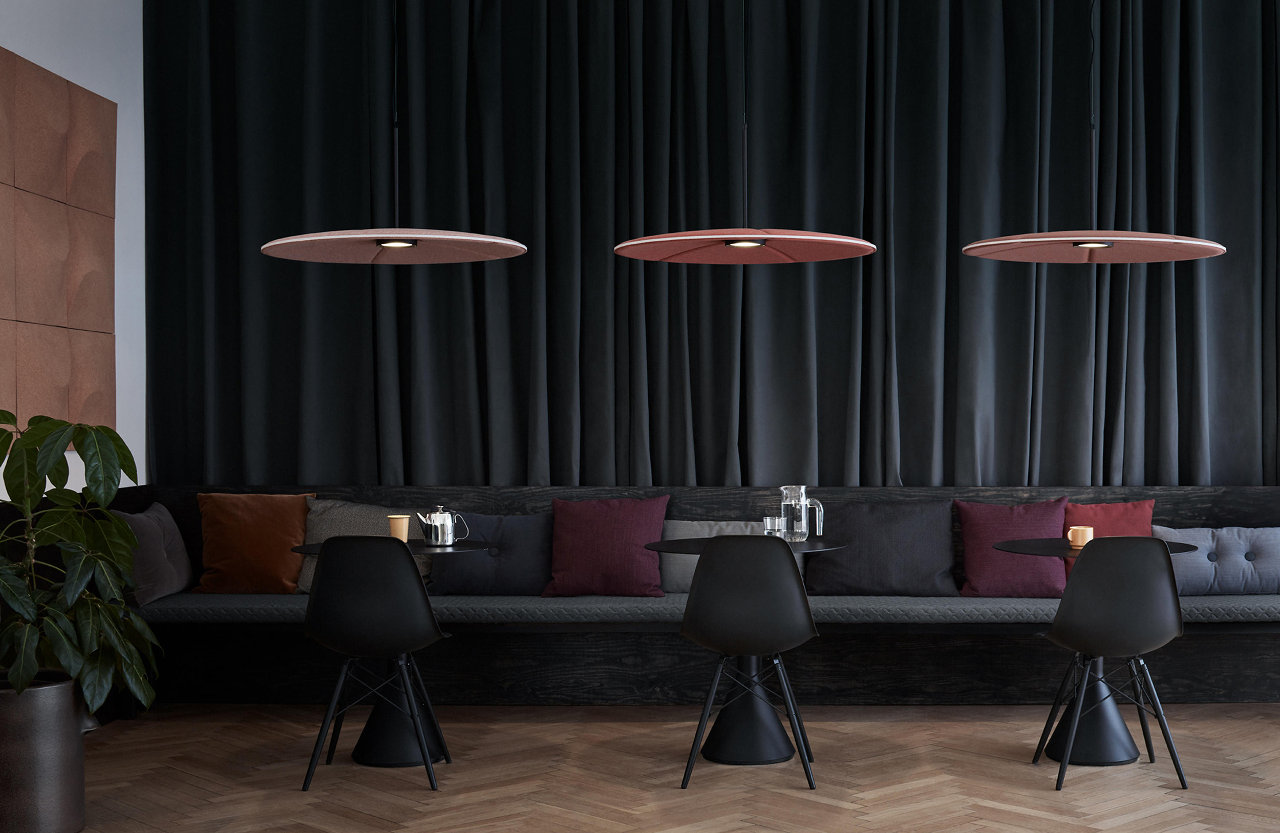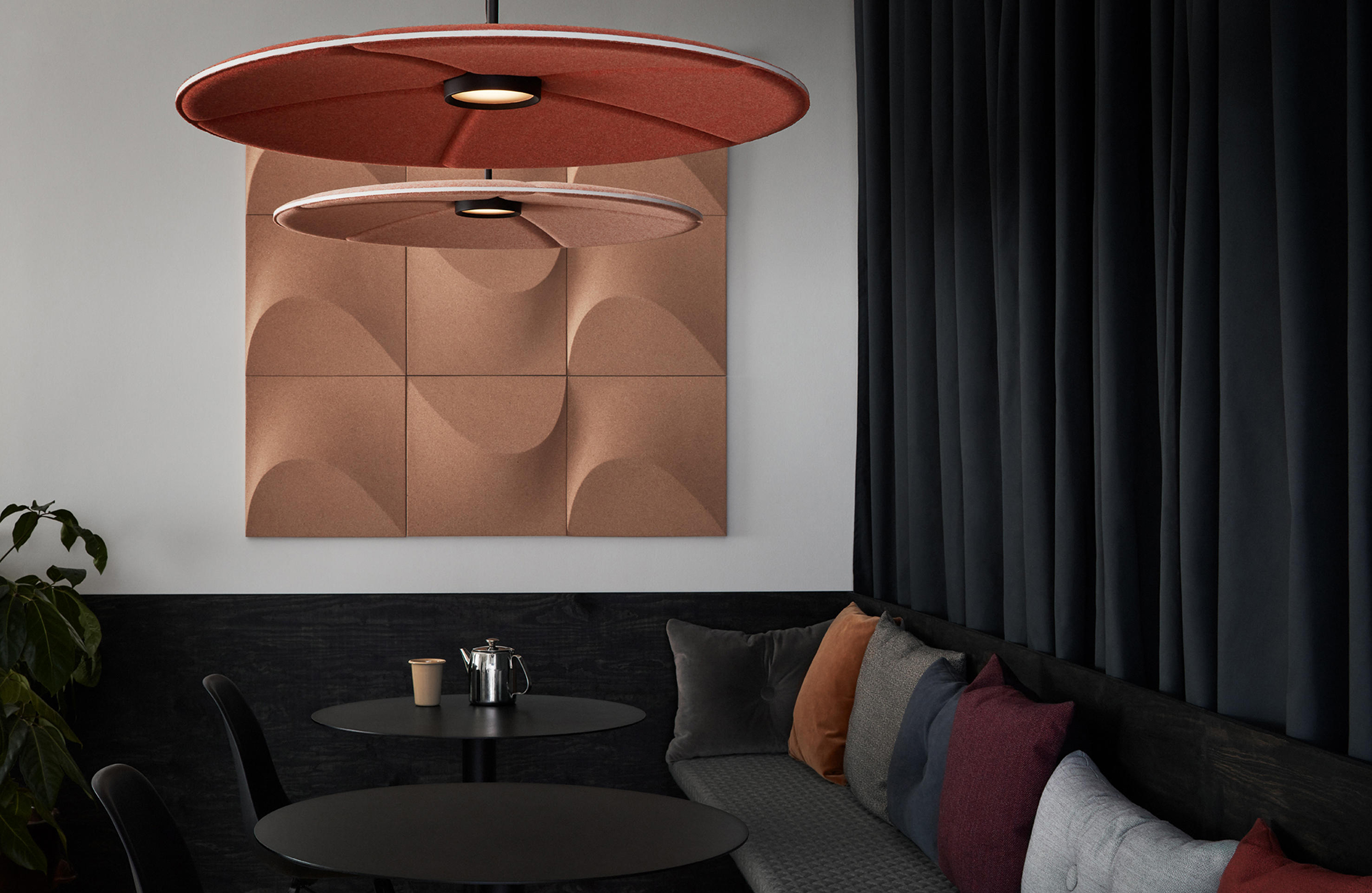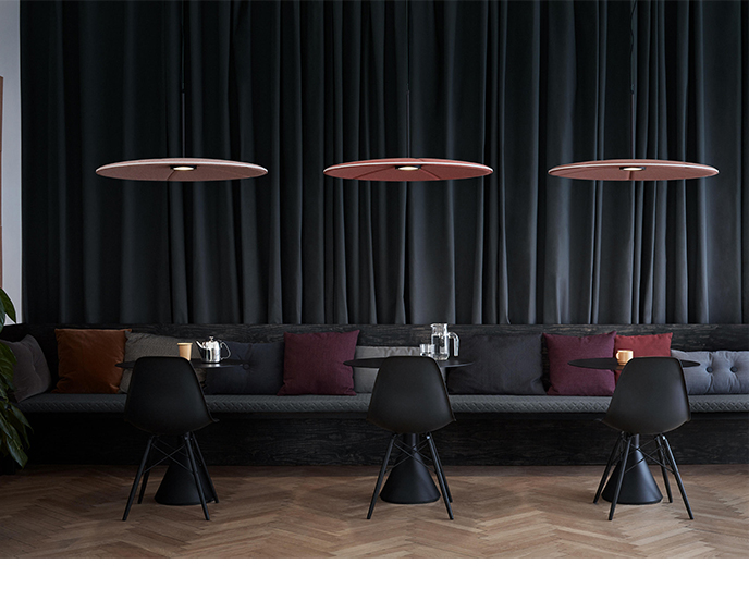Lily吸音灯代表了声学产品的全新视角。它的减噪功能 - 制成的模制毛毡 - 已经完全集成,您甚至都不会注意到它。