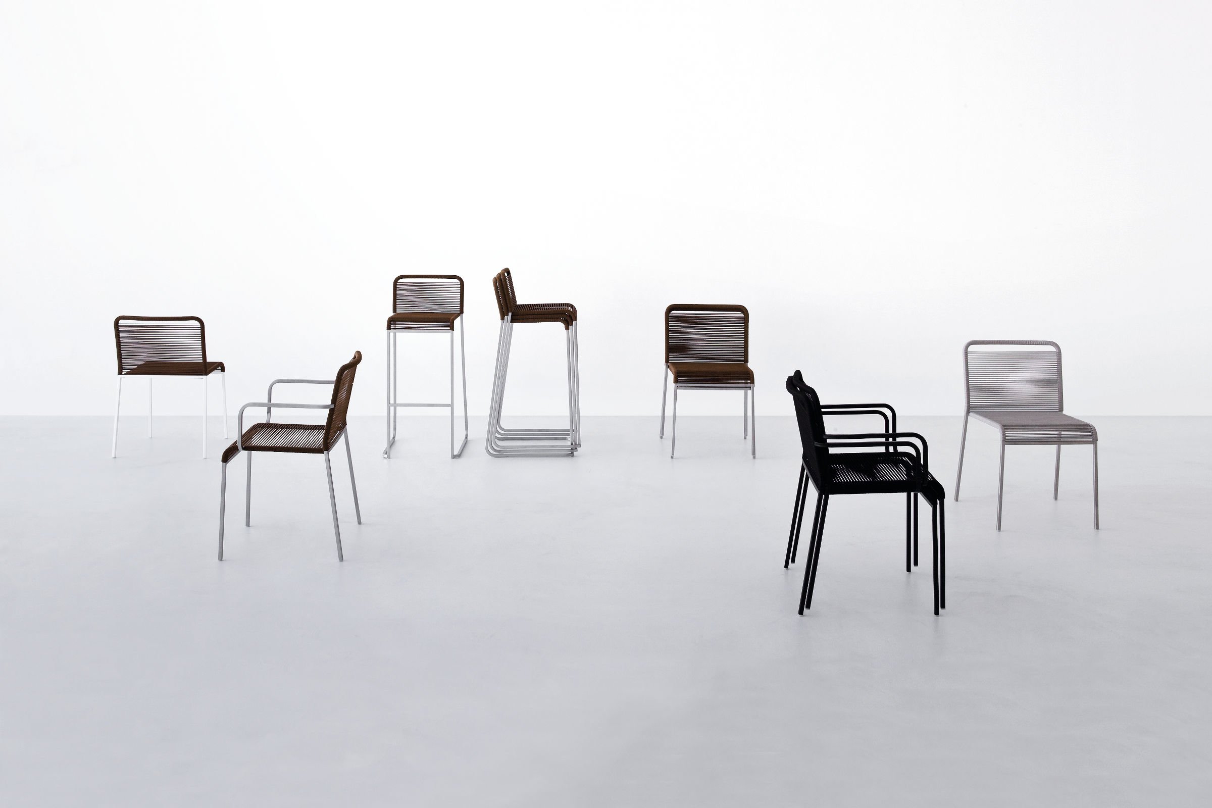 该金属框架完美匹配绳与棉质饰面,使堆叠的ARIA凳子一个新的轻型家具项目,理想的日常使用在户外环境中,具有鲜明的特点。