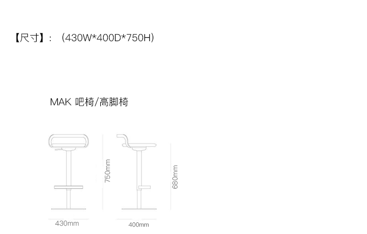 MAK 吧椅/高脚椅 系列尺寸/示意图