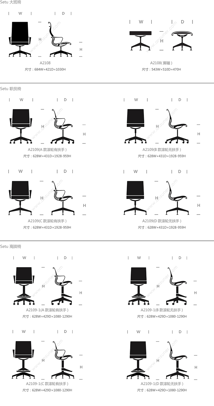 Setu 大班椅 系列尺寸/示意图