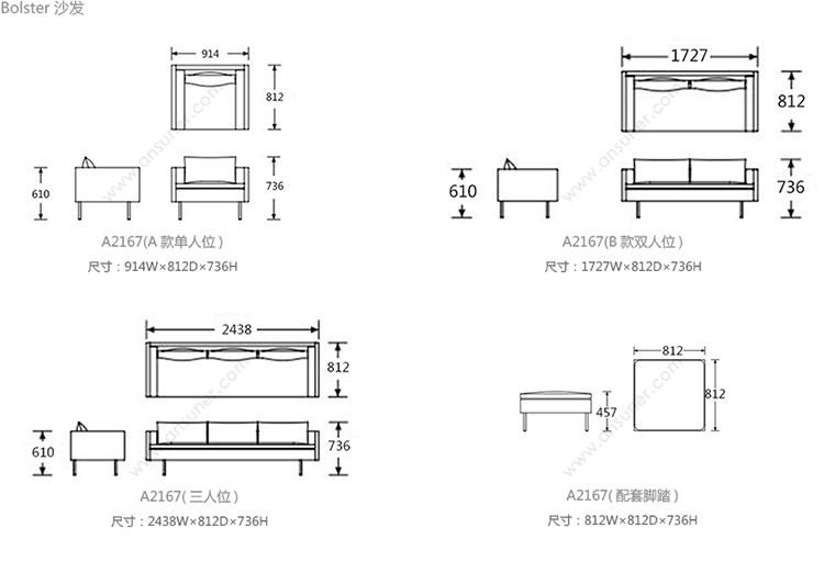 Bolster 系列尺寸/示意图