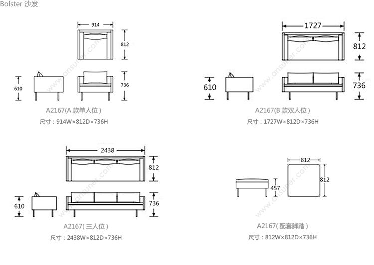 Bolster 系列尺寸/示意图