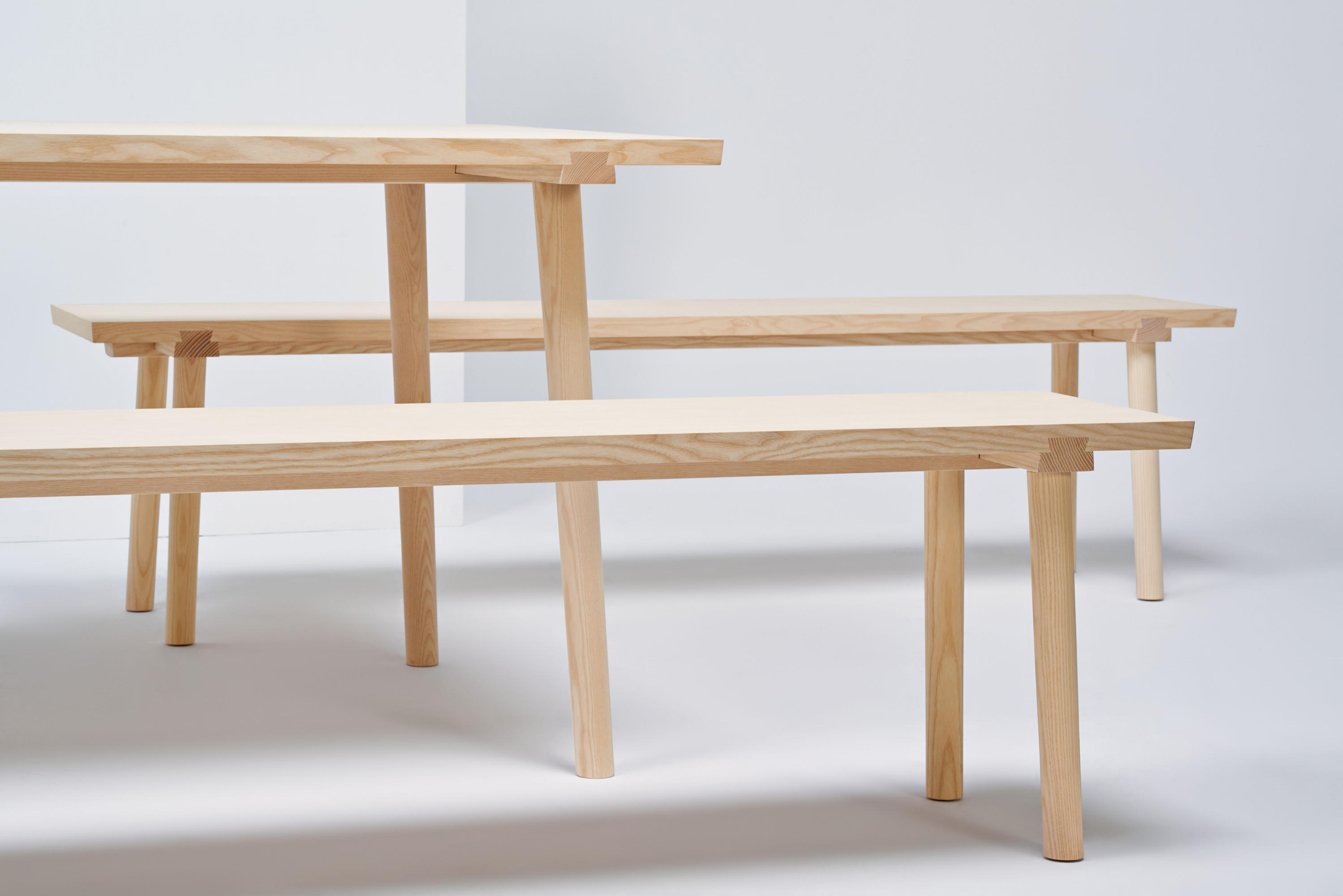小凳子的腿放在座位上。燕尾榫可以非常精确和直接。