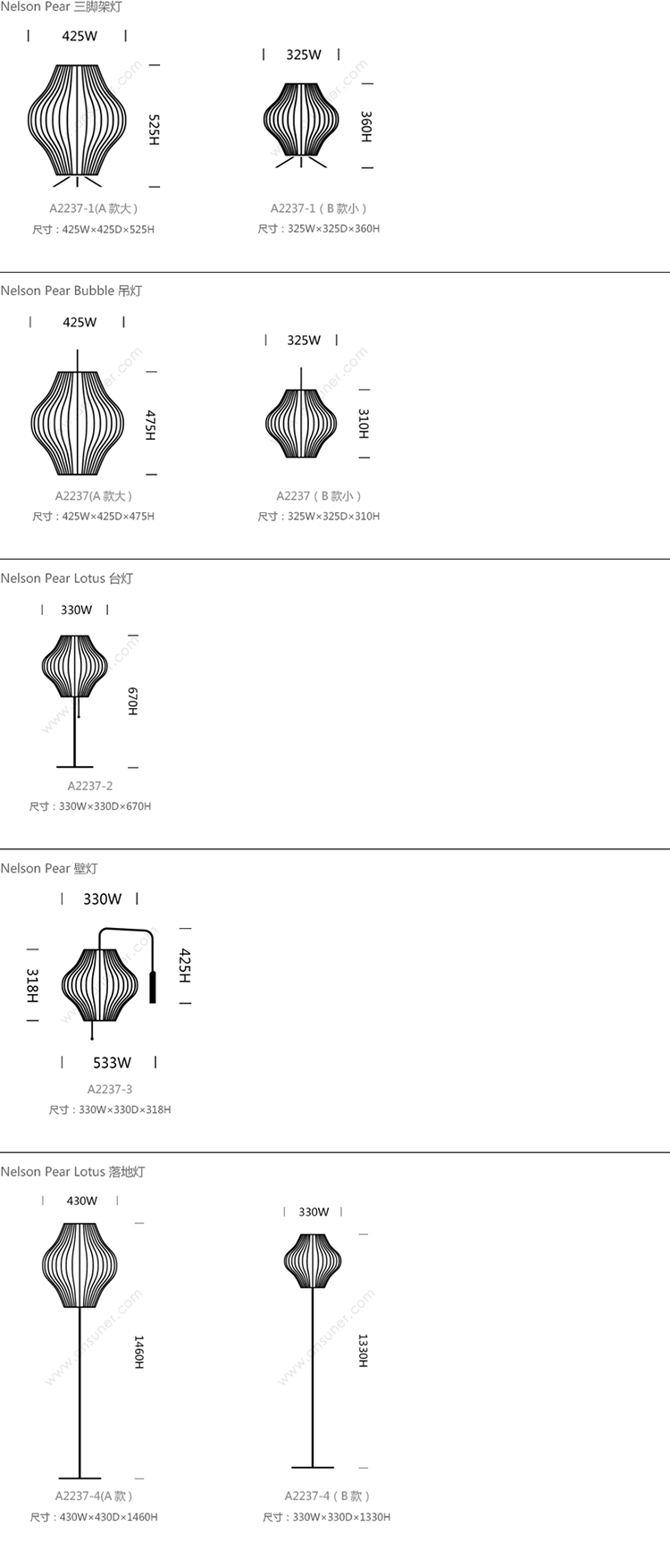 Nelson Pear 系列尺寸/示意图