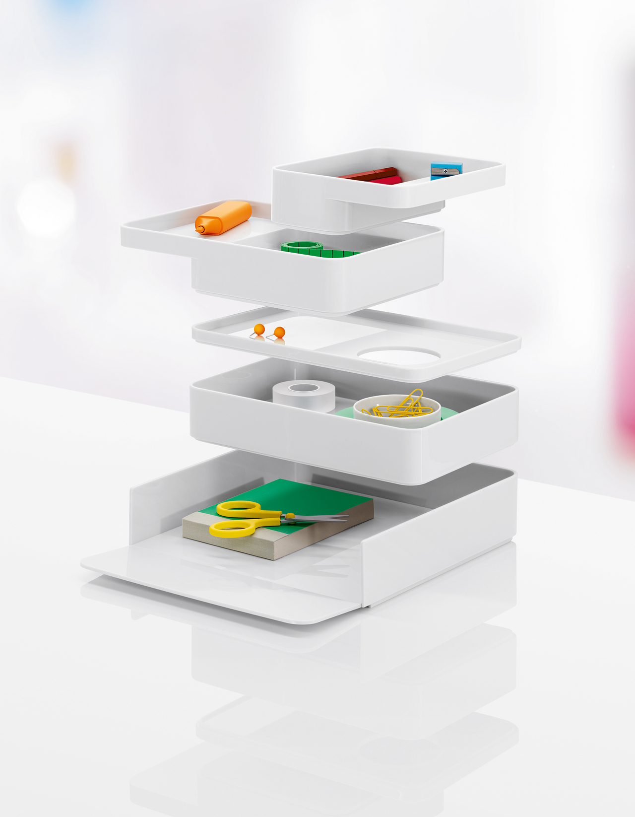 Sam Hecht和Kim Colin在设计Formwork及其大号和小号托盘之时充分考虑到了我们生活中及桌面上随处可见的物品。在系列托盘的设计上,设计师呈现出了一个悬臂式横档,以便能够按照实用性归置物品——因此,部分物品触手可及,而其他则置于背后稍远处。