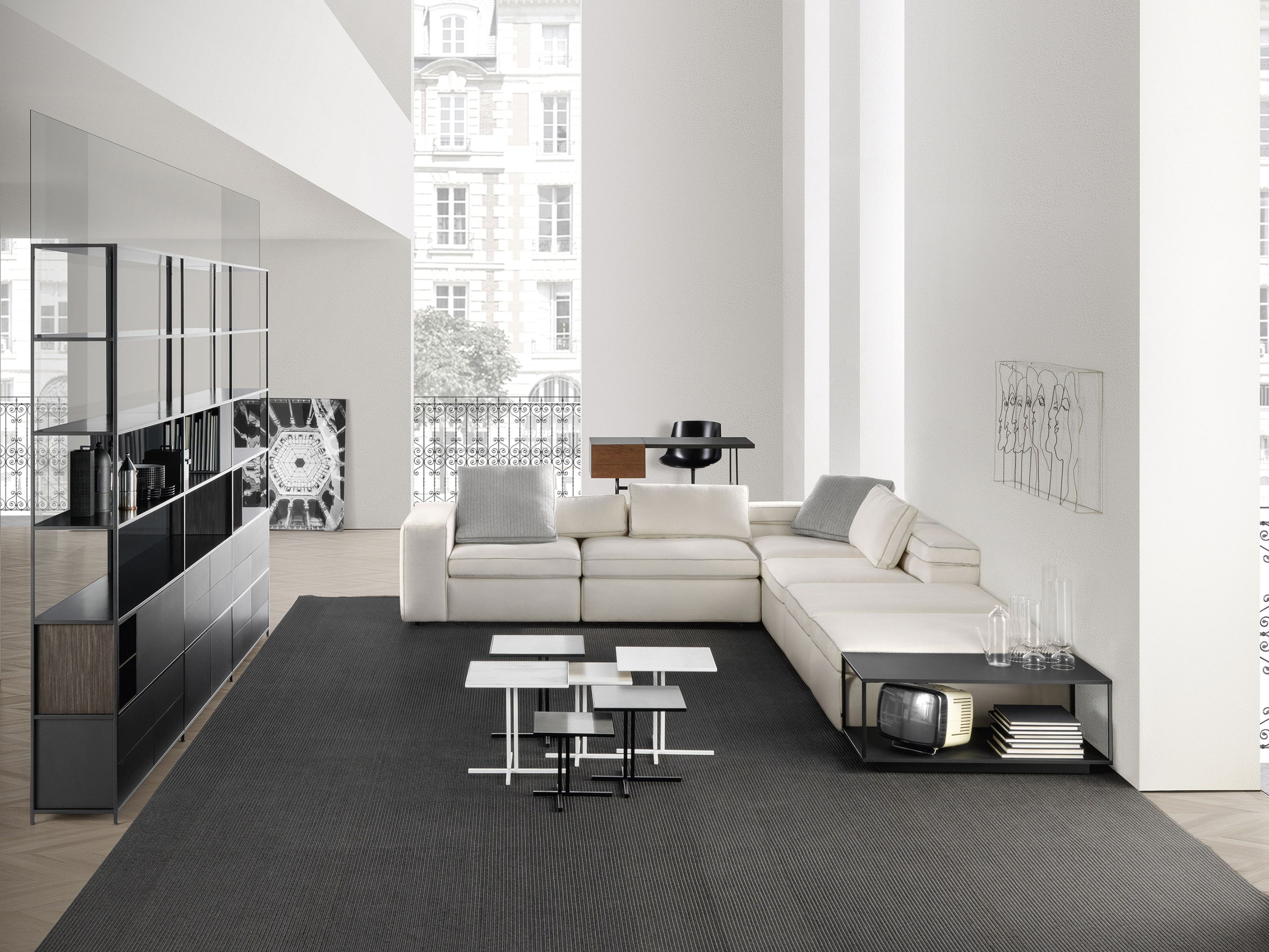 相互联系的元素令人愉悦,形成了讽刺意味的集合。通过简单的设计,K咖啡桌可以包含在任何上下文和设置中;作为单个零件或组合在一起,可以找出基于客户创造力的不同配置和组成。镜框为哑光白色或石墨漆钢制。瓷釉桌面,有亮面或缎面涂层:白色,中灰色和无烟煤色,以及特殊的Corten哑光版本。