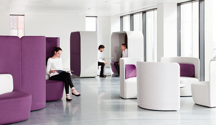 作为一种有高、低背两种款式可供选择的椅子,这种设计可以提高声学特性,并吸收周围背景噪音。