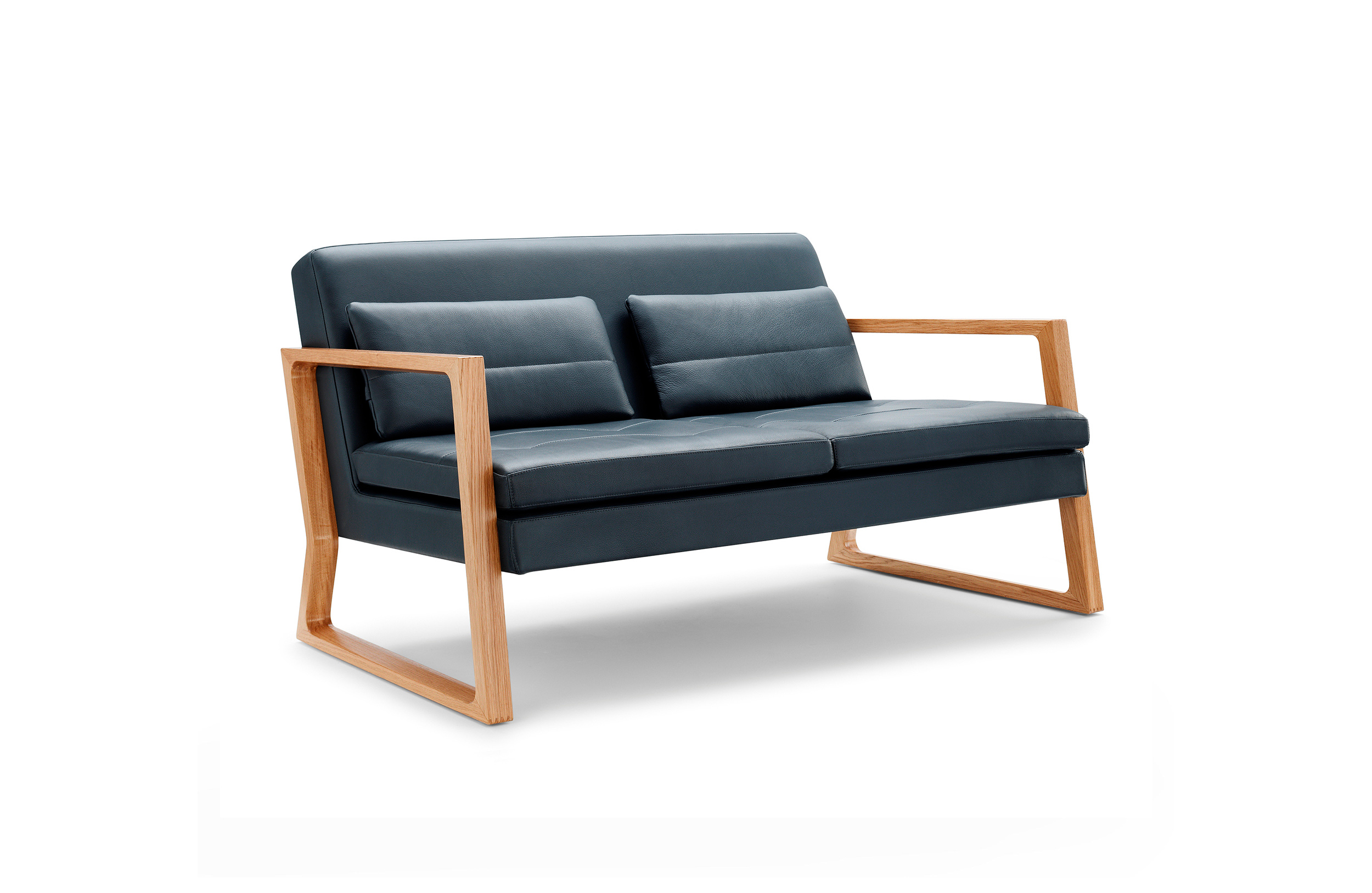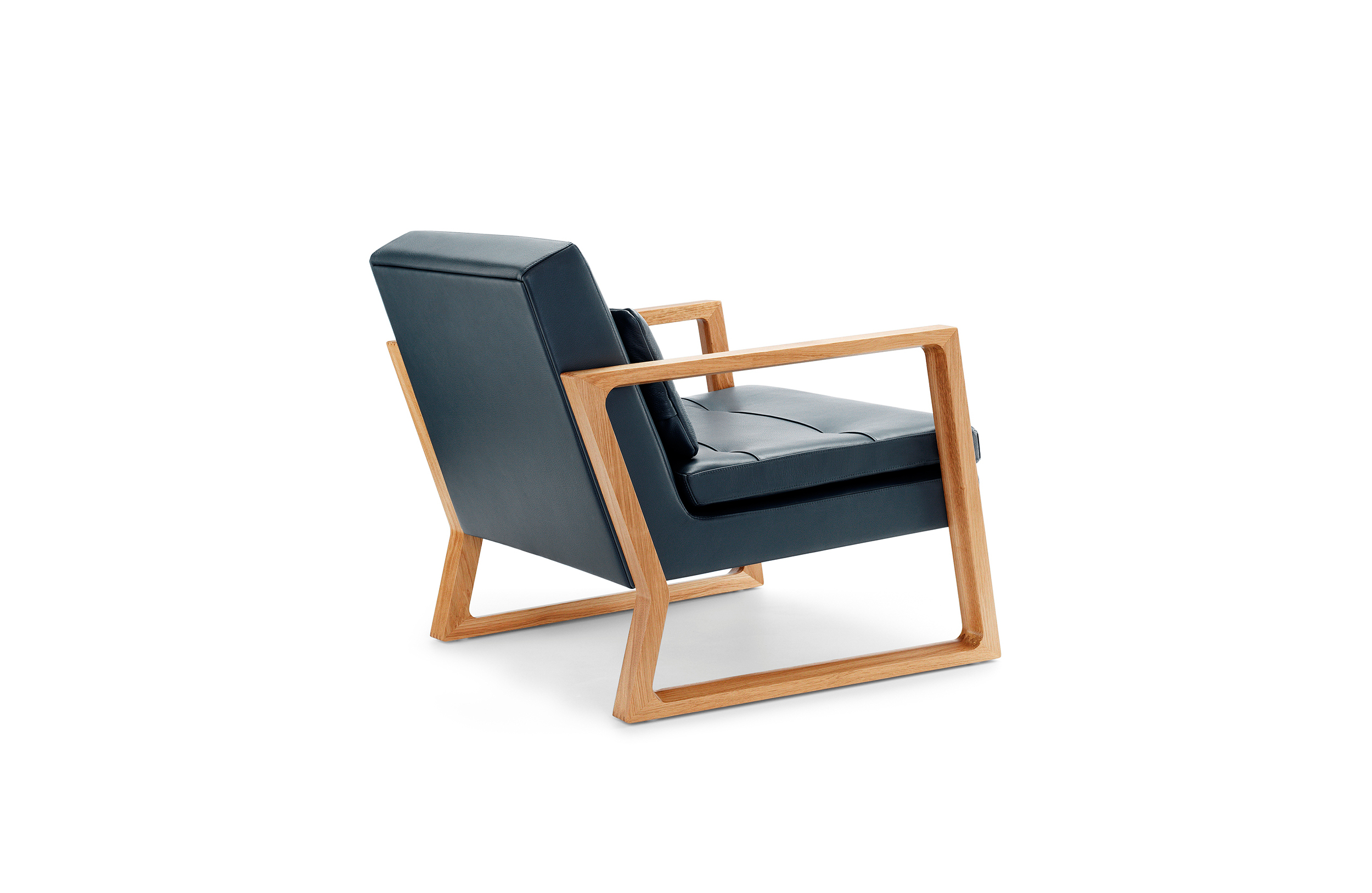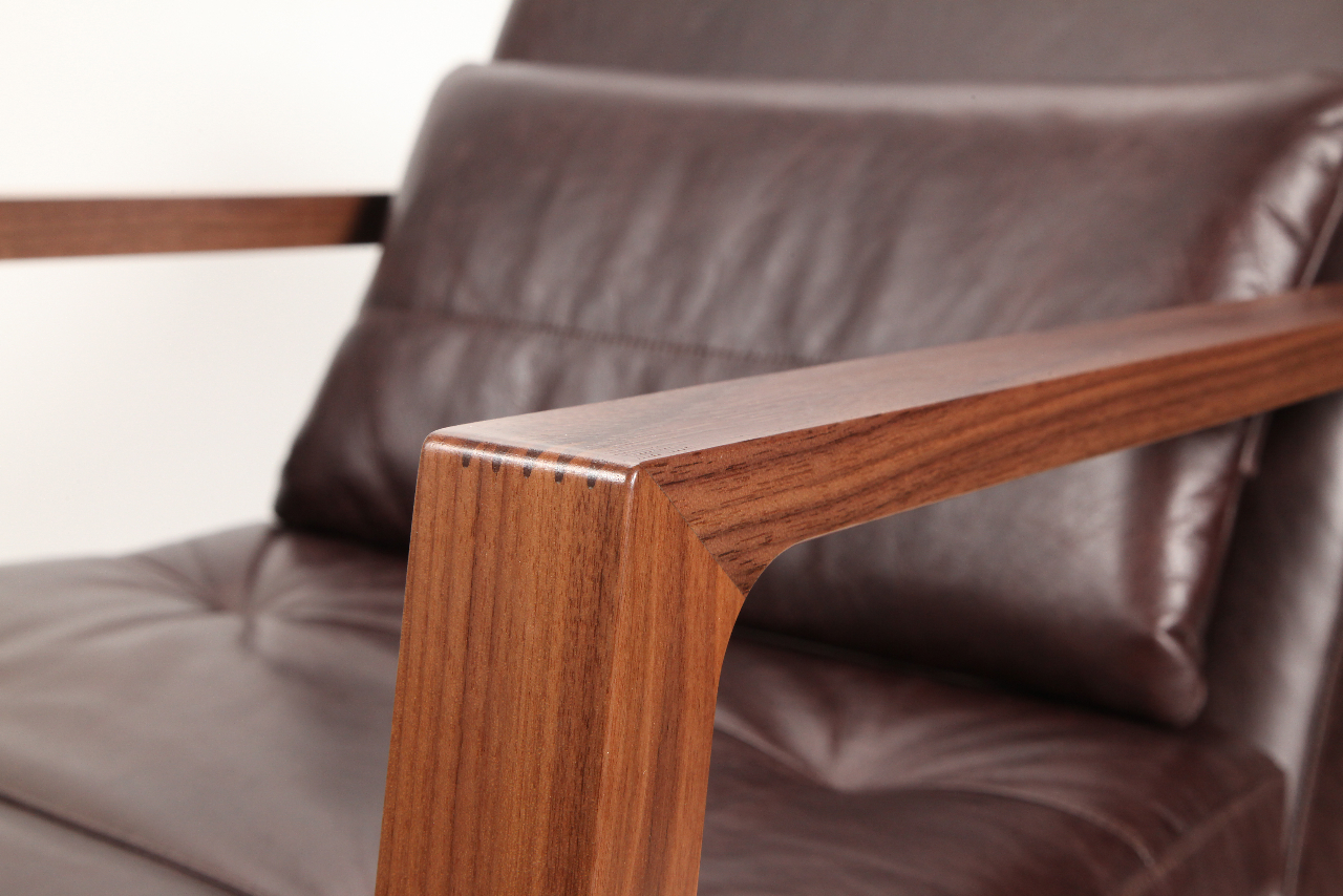Luge系列采用黑色美国胡桃木或欧洲橡木制成的实木框架,座椅和椅背采用线性针脚细节设计。 框架上的梳形接头和斜边细节完成了令人惊叹的效果。