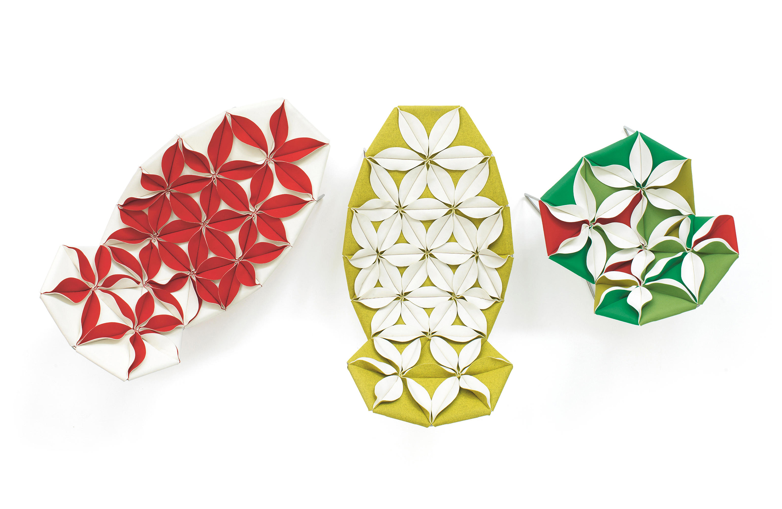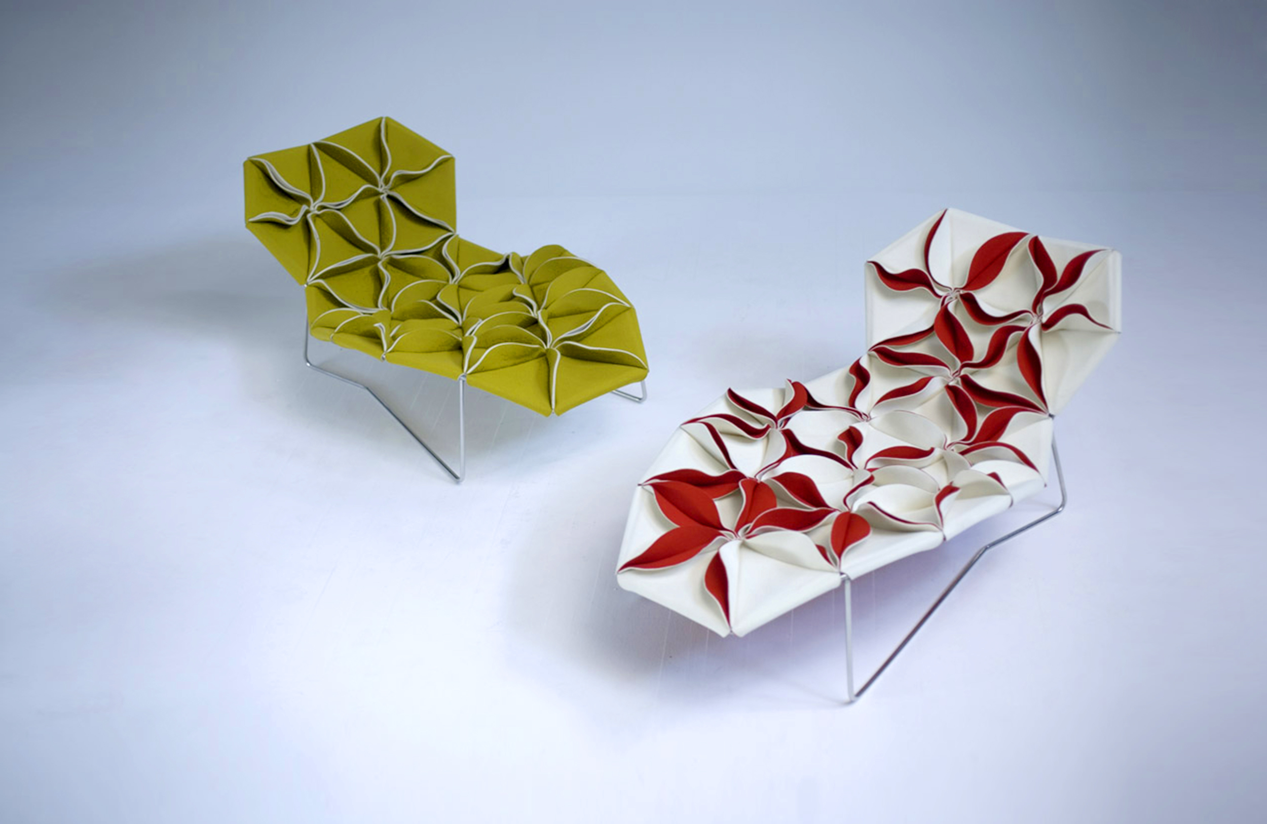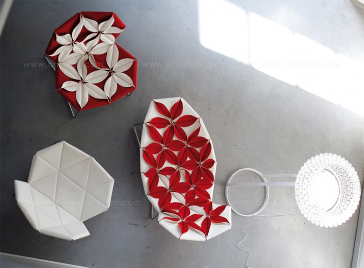 座椅上花瓣綻放的效果,傳達著兩種截然不同的情緒。花瓣向上伸展賦予了一種獨特而女性化的蓬勃的生氣;而向下的花瓣則顯得格外嚴肅認真。