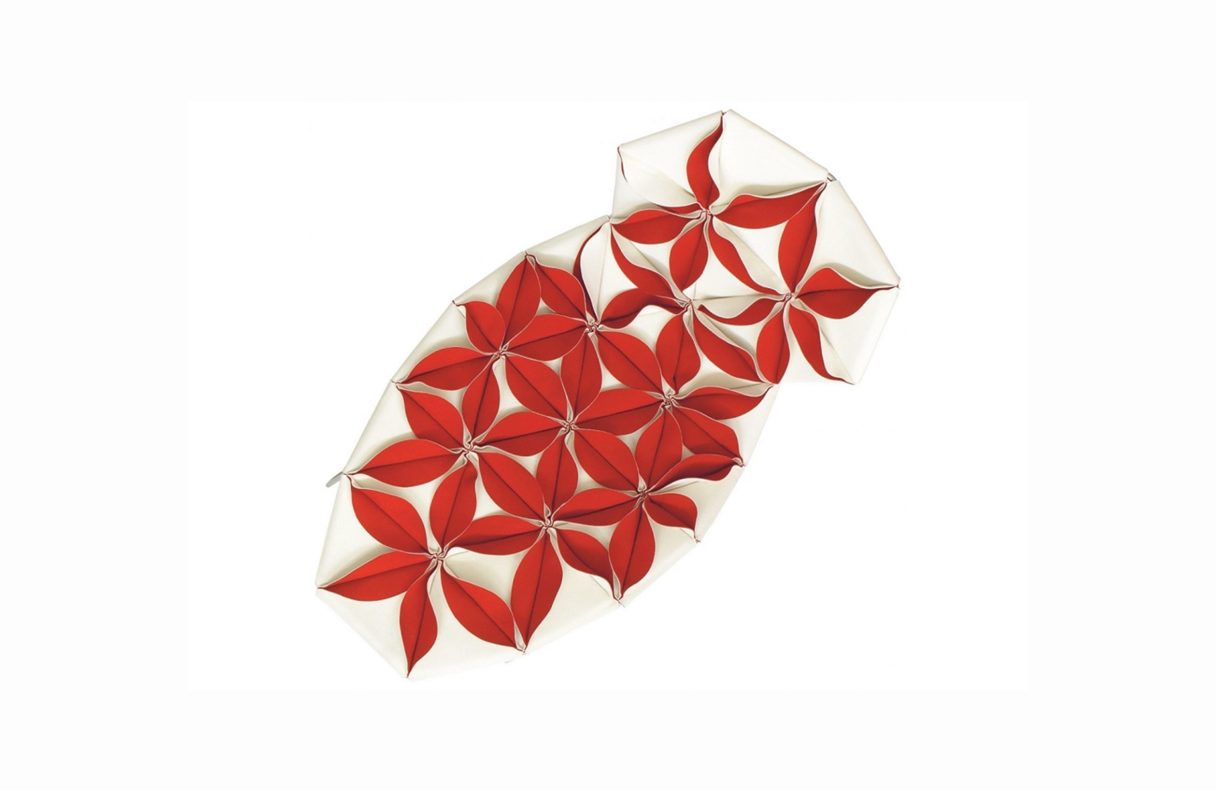 這是一件具有很高裁剪技術的作品,透過活潑的色彩和革新的材料,結合了時尚與設計。雙面可以用黑色和白色,或一個自然的色調搭配出如萬花筒般的錯落有致,極具表現張力的椅子。
