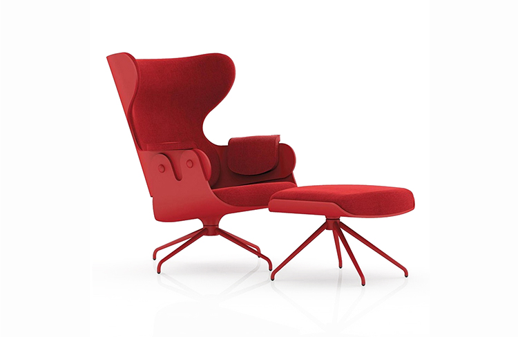西班牙设计顽童 Jaime Hayon 2010 年在米兰家具展上再次吸引所有人的目光,Jaine Hayon 与西班牙家具厂牌 BD Barcelona Design 合作的 Showtime 系列家具自推出后俨然成为Jaime Hayon 个人的经典代表作,在 2010 年加入了新成员 Showtime Lounger 休闲椅,当中似乎不难发现有着 Charles & Ray Eames Lounge Chair and Ottoman 的影子,重新诠释这张20世纪经典椅款 Hayon 对设计大师致敬的同时,也注入更多 Hayon 幽默诙谐的设计手法。 Showtime 系列家具主要使用的材质和构造包括:优质夹板压模贴木皮而成、进口头层牛皮或进口羊绒布、内部填充高密度海棉、优质铝合金脚架。