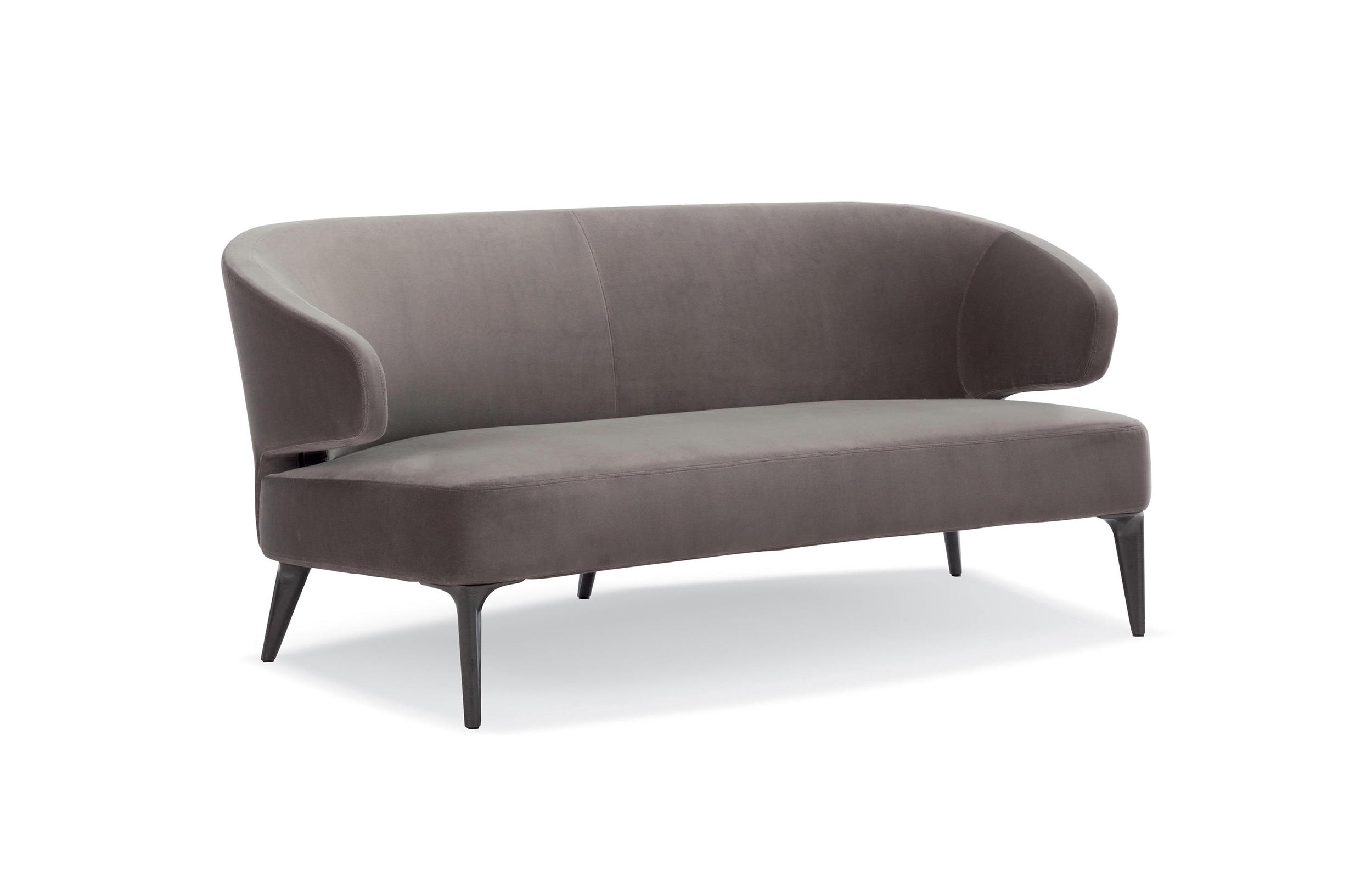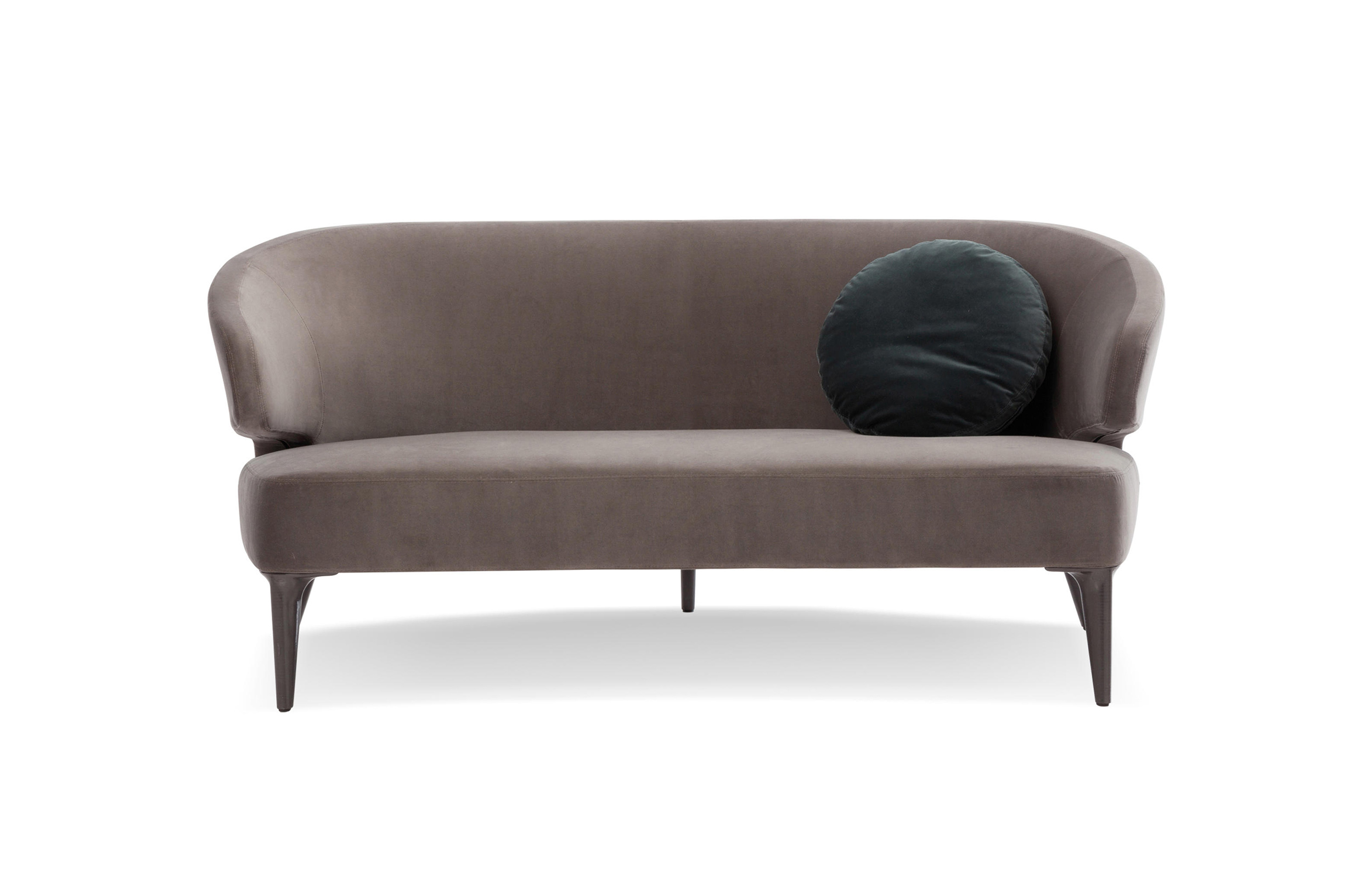 沙发的围裹式靠背特色十足,扶手线条与之完美呼应,以蓝灰色调呈现的压铸铝合金支脚尽展精致设计之美。