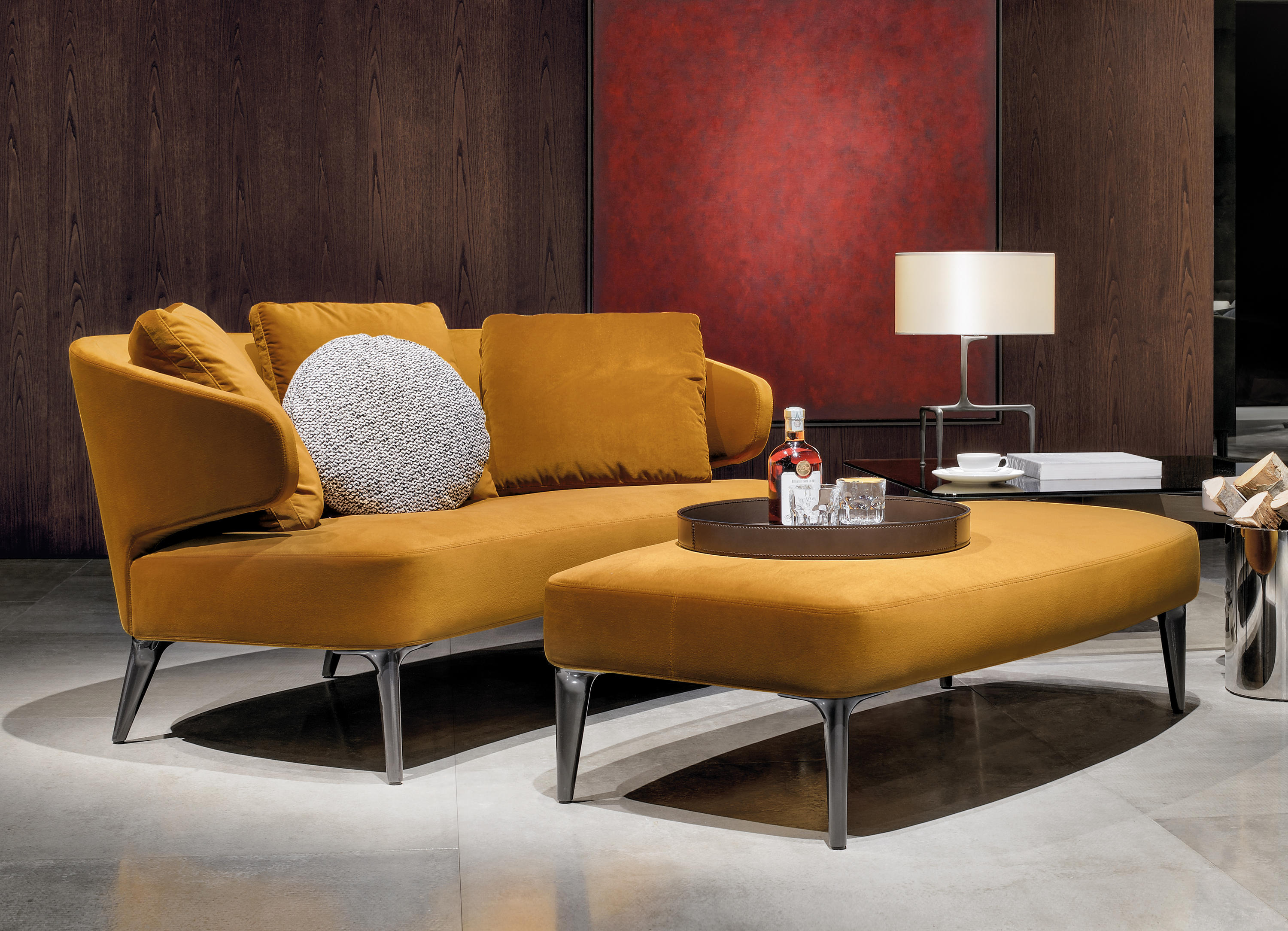 阿斯顿沙发、靠椅、脚垫与坐卧两用沙发拥有呼之欲出的复古韵味,结合唯美线条、轻盈廓形与精准封套,淋漓尽致地展现出超凡卓绝的手工技艺。