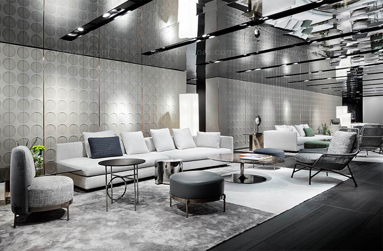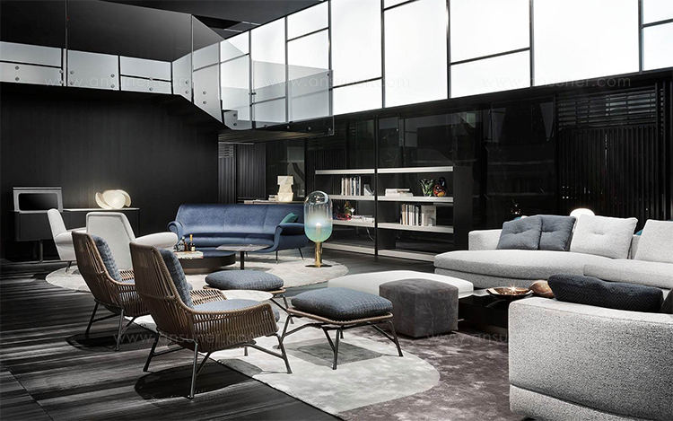 除去了2012年原版的填充物后,王子的“绳索”在室内展示了外壳的骨架,现在它的特点是由皮革覆盖的管状弦交织在一起。 设计灵感来自五十年代的美国现代主义,强调了锡色铝基通过复杂的压铸技术实现。扶手椅的柔软度由织物或皮革装饰的坐垫和靠垫突出。 米诺提产品的优势之一是对细节的剪裁讲究,这一点在圆形轮廓线的执行中得到了突出体现。圆形轮廓线的特点是贯穿整个皮革长度的独特接缝。王子的“绳索”室内有四种颜色——鸽灰色、灰色、烟草和深棕色——扶手椅可以有一个脚凳,上面有相同的风格标志。