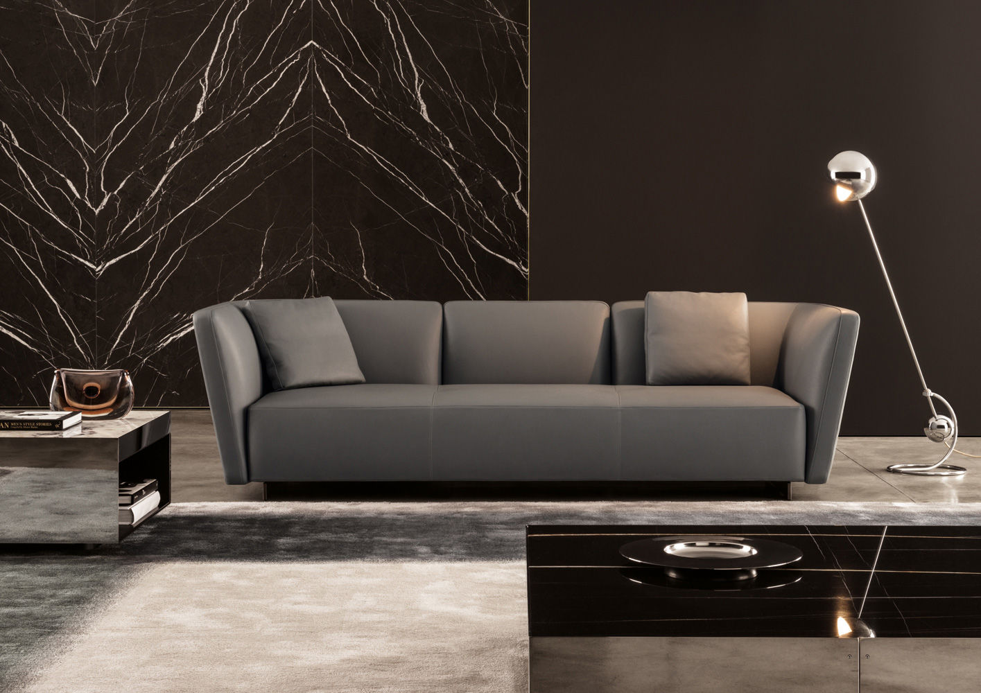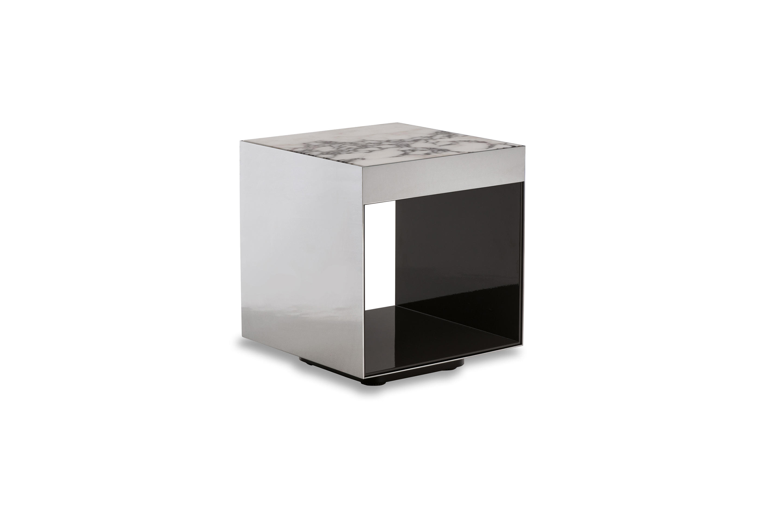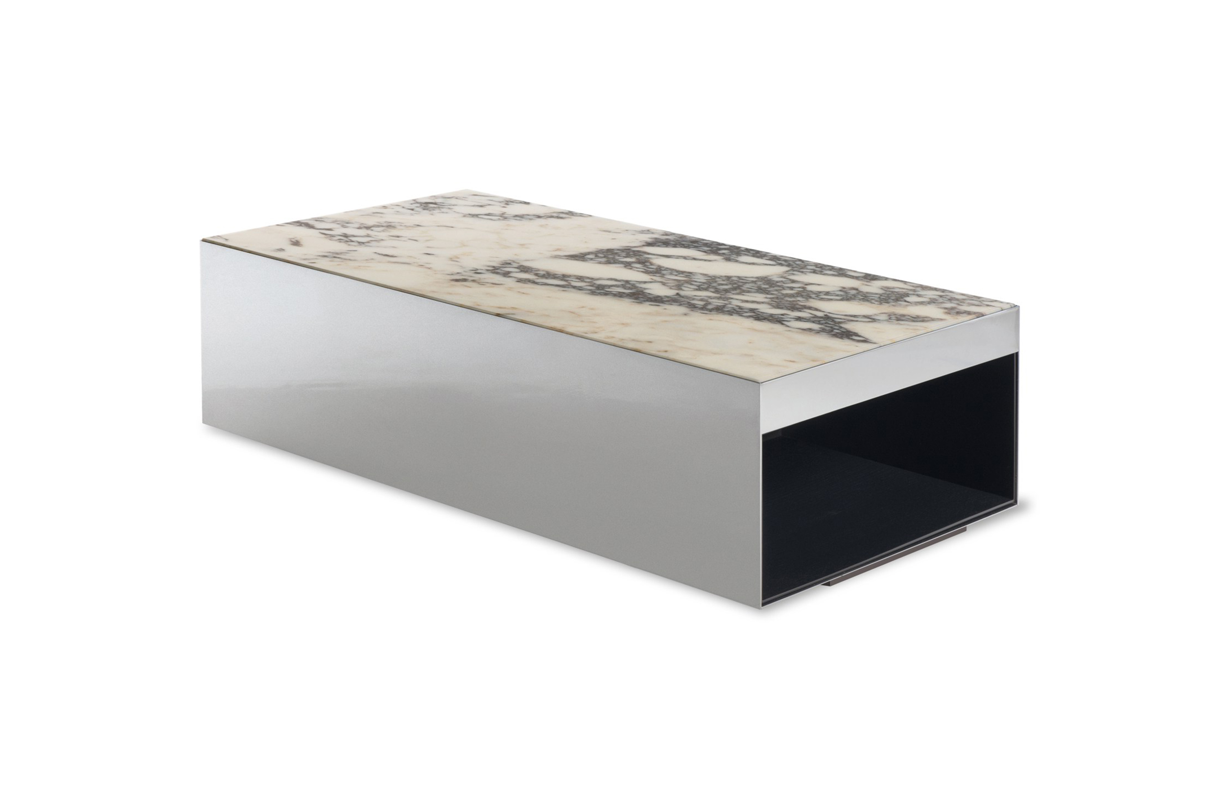 这是用于收纳贵重物品的边几系列,拥有纯粹而简洁的美学设计,有着精美绝伦的多种材质组合。这一边几家族拥有华贵的美学特质,因而也有着非同一般的功能,在提供实用置物表面的同时,呈现精美的装饰效果,具有50年代和60年代的米兰设计风格。金属构架的表面有亮铬色、亮金色和亚光铜色,嵌入构架的台面可谓画龙点睛,选用多种珍稀的大理石材质,其中包括Arabescato Purple、Sahara Noir和Rosso Levanto,或是Moka色的白蜡木、Moka色橡木。从建设性的角度来看,Elliott边几的内部储物空间可以用于摆放杂志或其他物件,有花岗石色的亮面漆或Moka色开孔橡木可供选择。金属材质的外部框架搭配包覆木质的内部框架,以此可以看出工艺的复杂性,同时平添一份温暖的质感,展现Elliott边几的名贵特质。