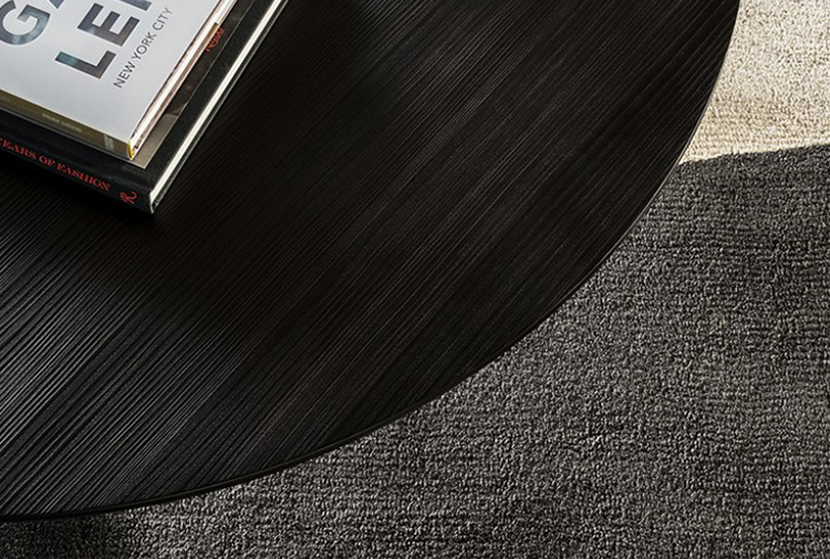 Song边几的基座完全采用黑色漆面的实心拉丝白蜡木制成,体现出非凡的家具制作传统。台面的细加工则体现出不同寻常的材料之选和精致的色彩方案,每一种饰面都对台面风格做出不同的诠释。