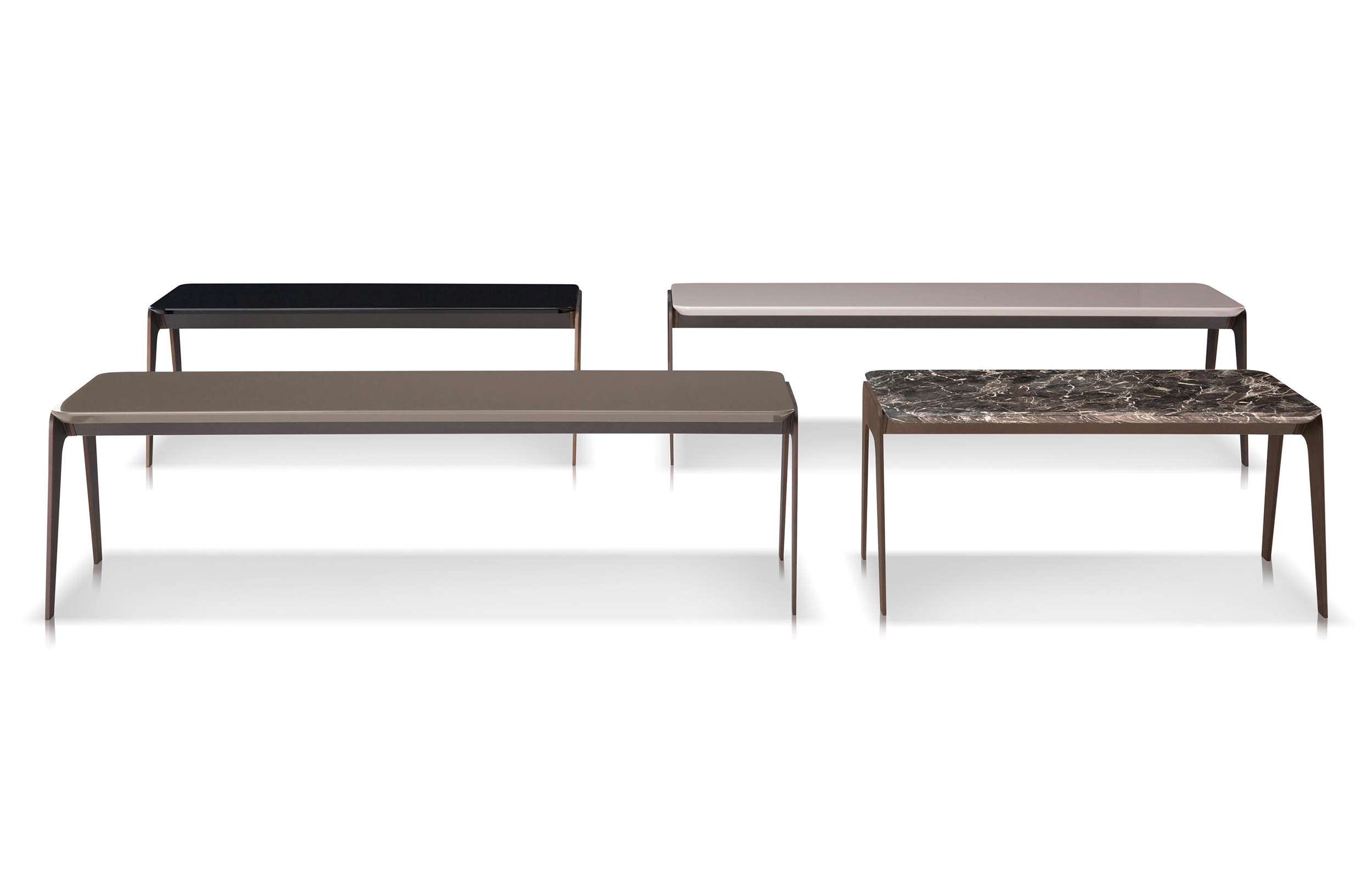 Kirk 木质底座茶几统一以矩形呈现,有三种长度可选。