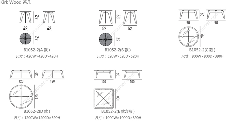 Kirk Wood 茶几 系列尺寸/示意图