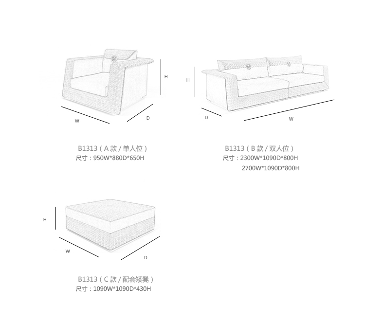 2300W*1090D*800H(其余尺寸见详情)