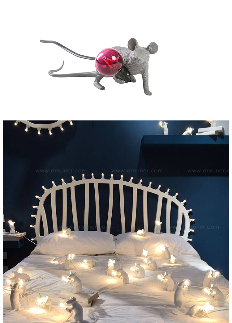 由Marcantonio Raimondi Malerba为Seletti设计的鼠标灯座为设计师的动物灯系列增加了一个新的品种。就像猴子灯,它美丽地再现了动物在树脂中的特点,这些鼠标灯显示出同样的注重细节和雕塑设计。同时以温暖的光芒照亮他们。这款设计灯是为室内使用而创建的,它可以单独使用,也可以与来自同一系列的其他两个版本配对使用。由树脂制成,有一层白色的光泽。