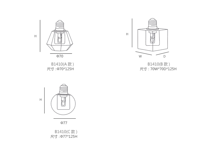 Crystal lamp 系列尺寸/示意图